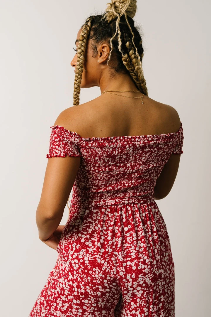 AK Jonni Smocked Jumpsuit | Red Floral Vacation
