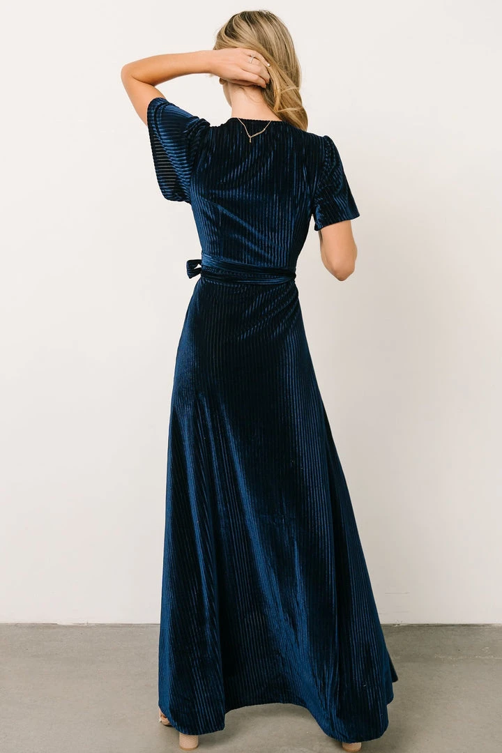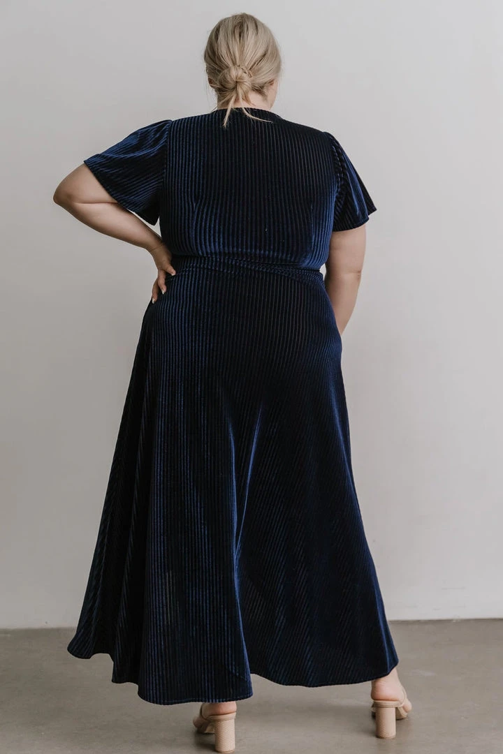 BB Custom Andi Ribbed Velvet Wrap Dress | Navy