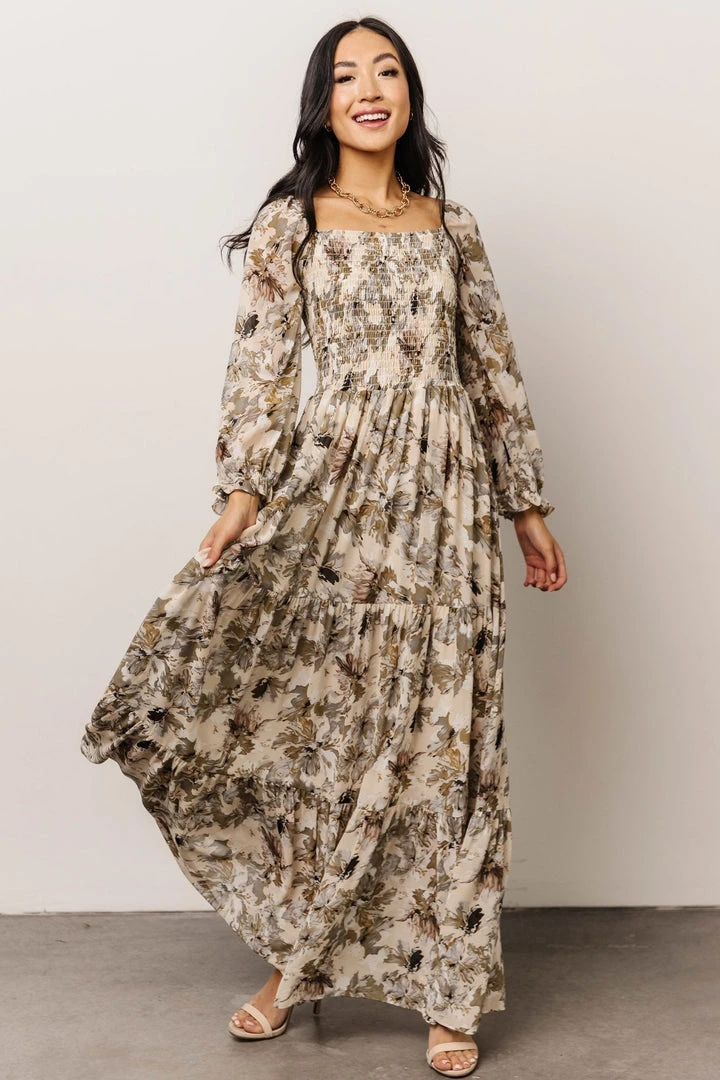 BB Custom Angelica Smocked Maxi Dress | Olive Floral Dresses
