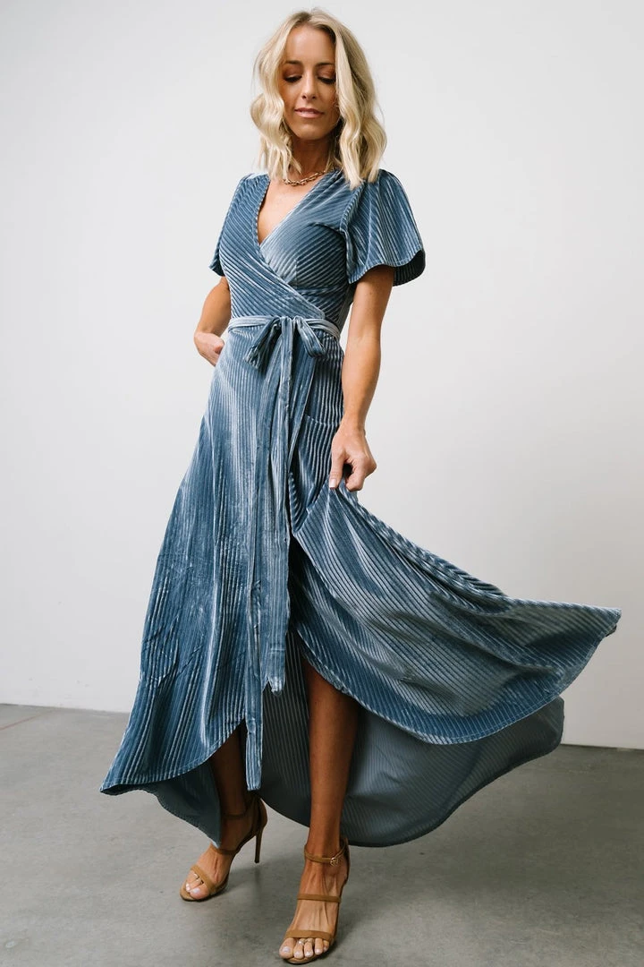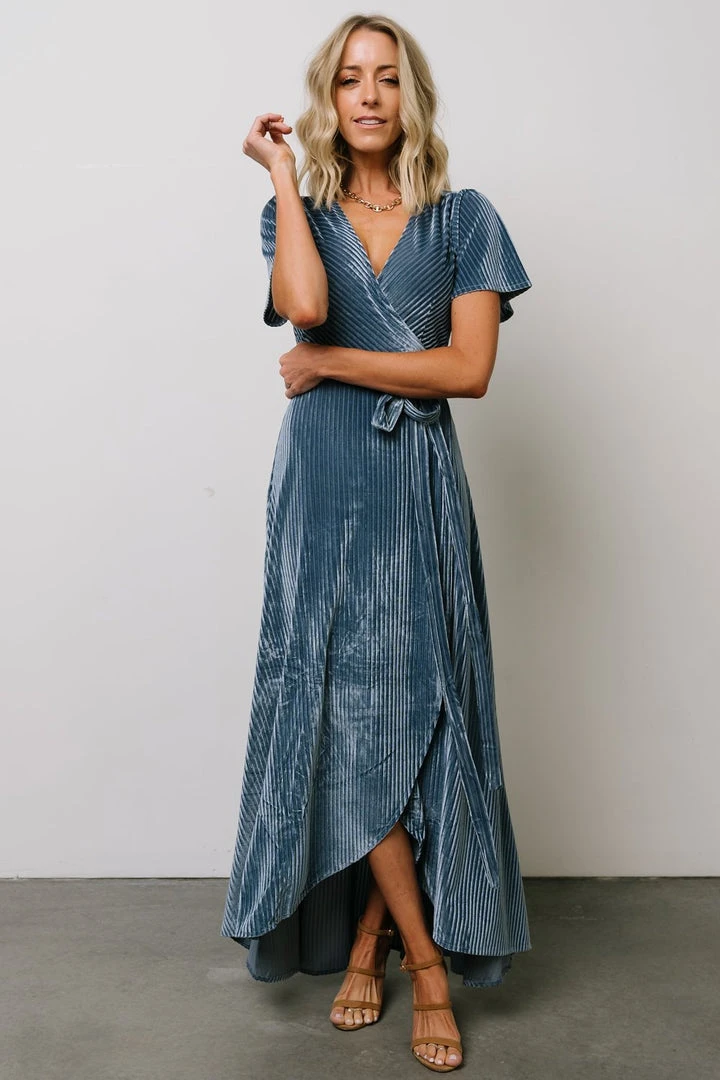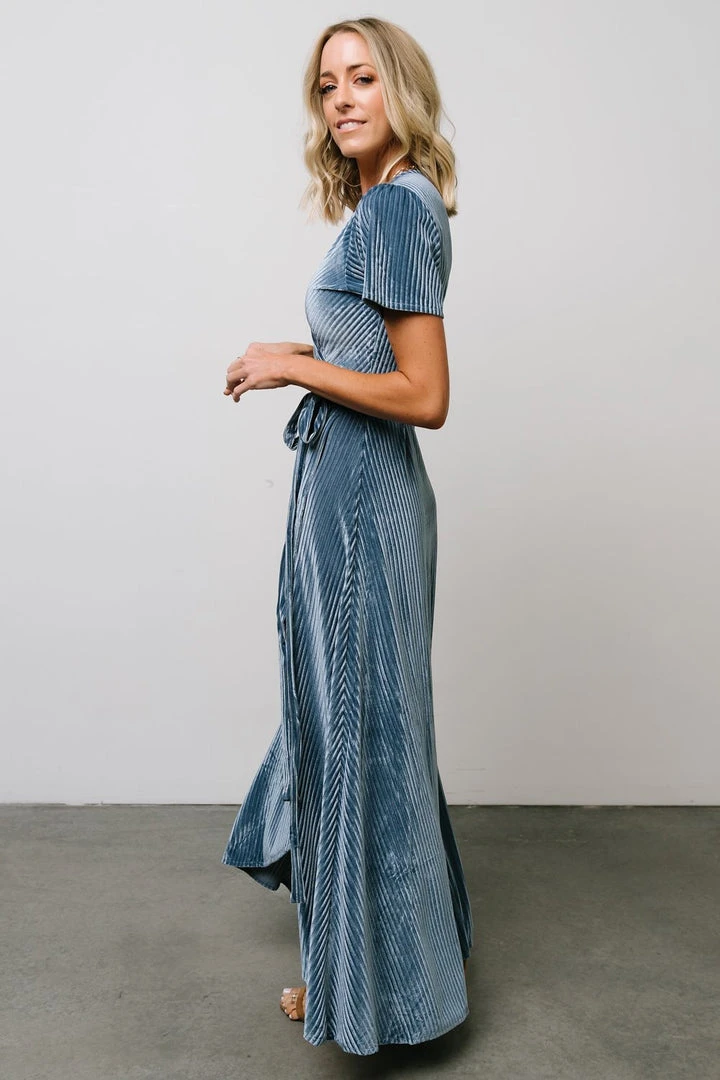 BB Custom Dresses Andi Ribbed Velvet Wrap Dress | Blue