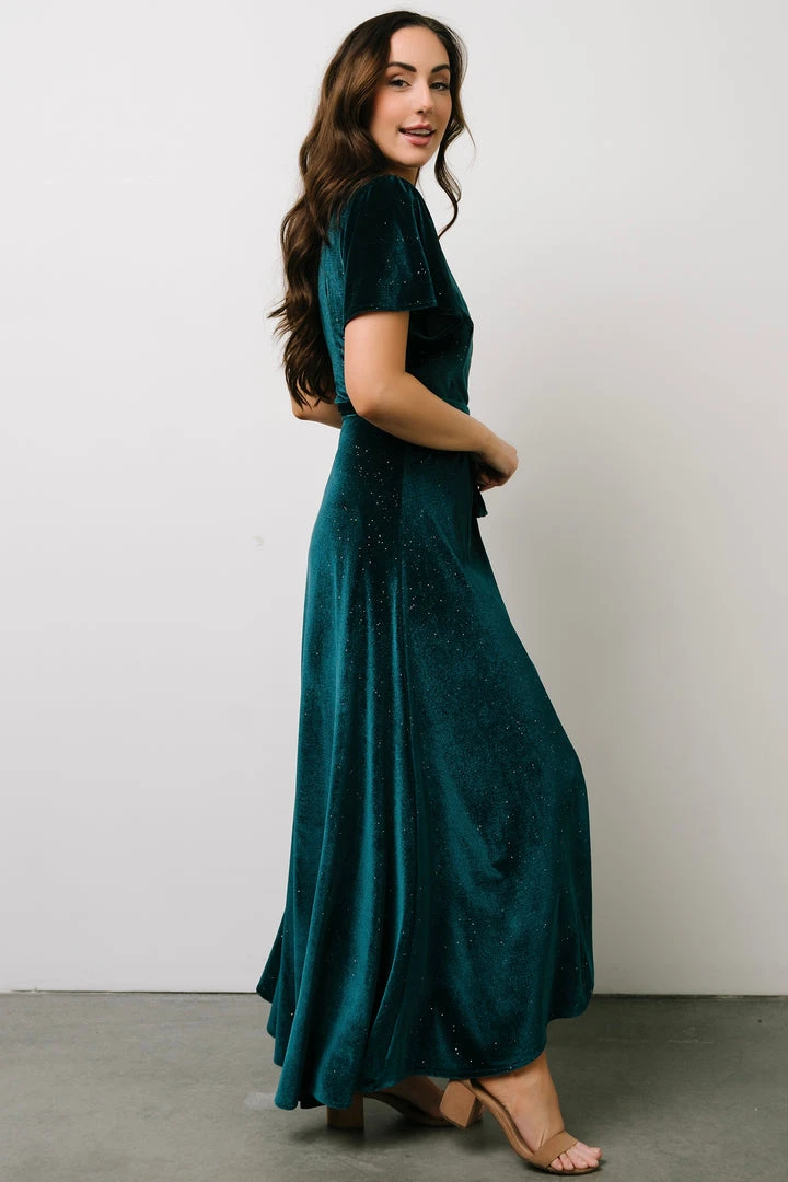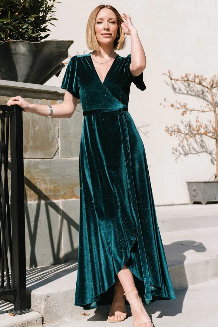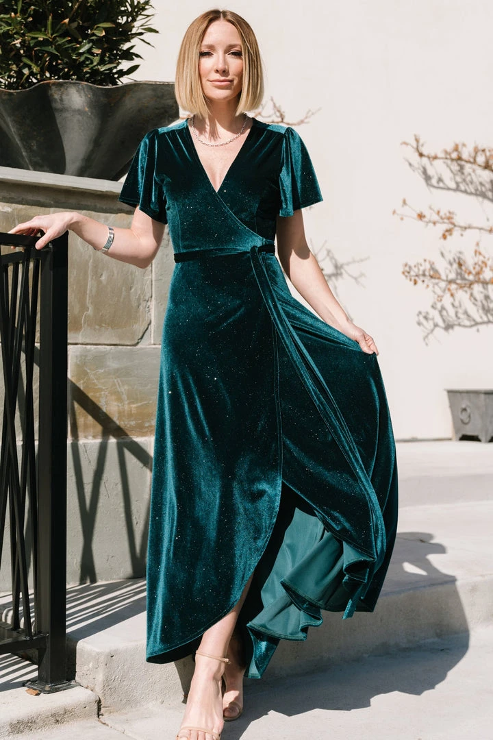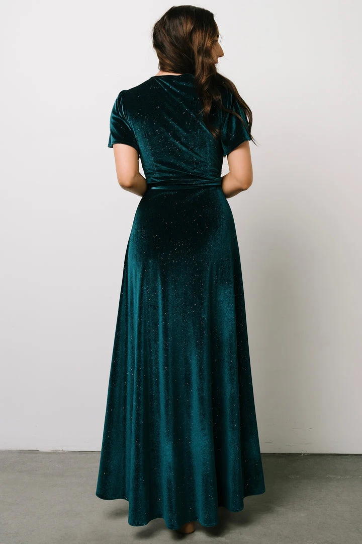 BB Custom Dresses Calvin Sparkle Velvet Wrap Dress | Jade