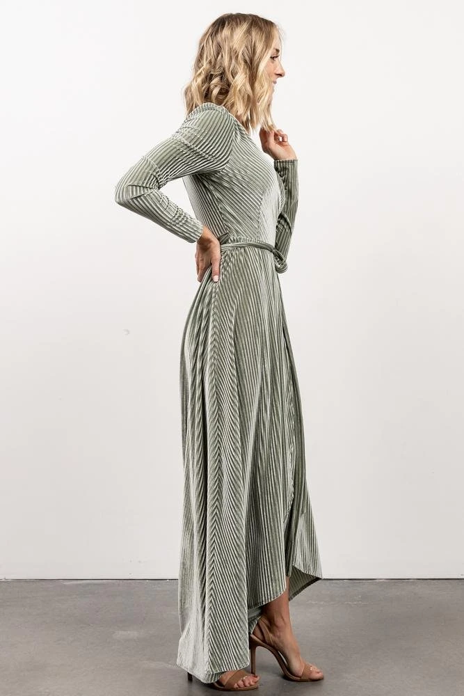 BB Custom Dresses Jada Ribbed Velvet Wrap Dress | Dusty Sage