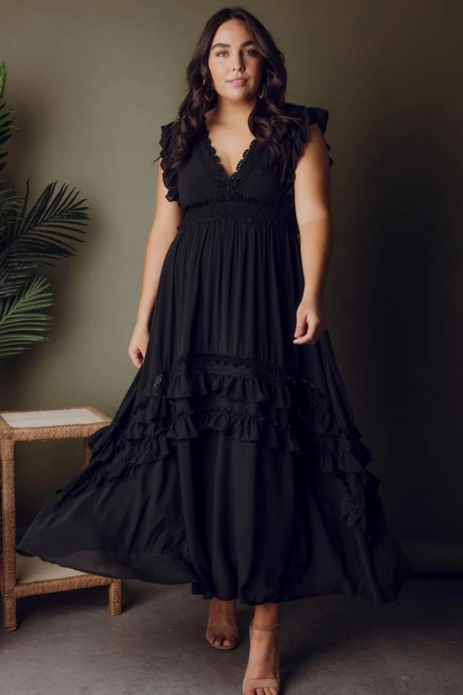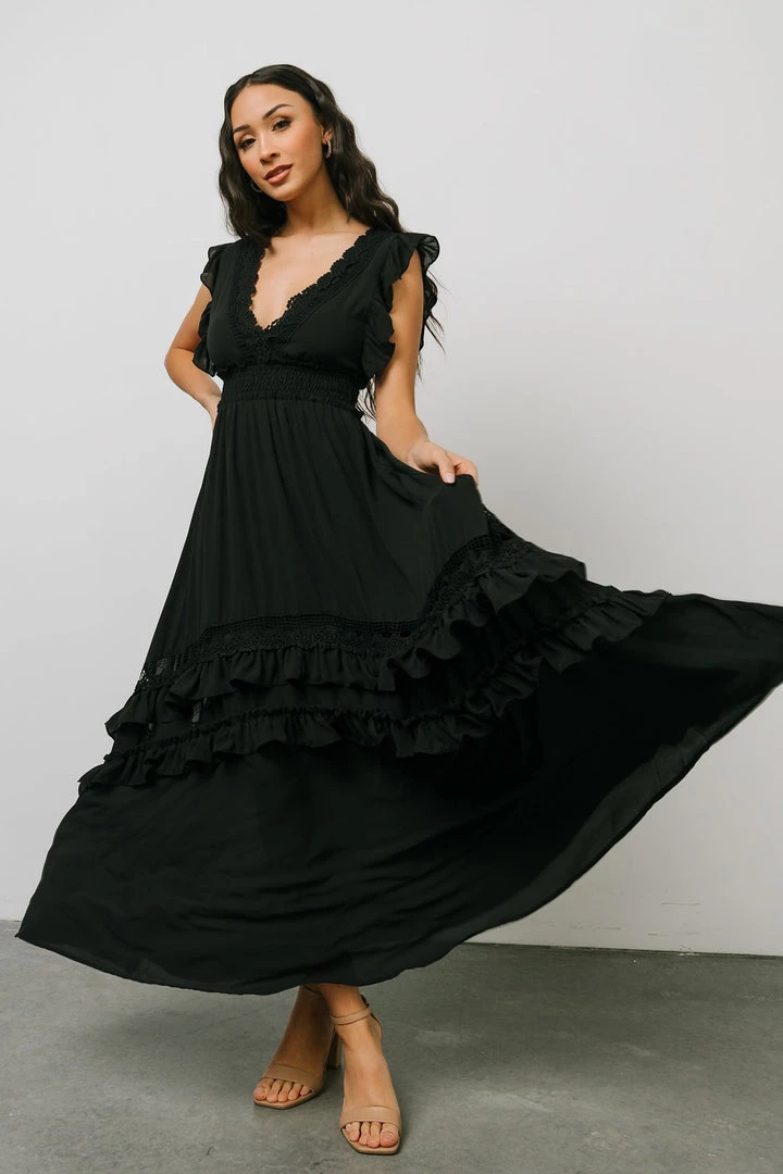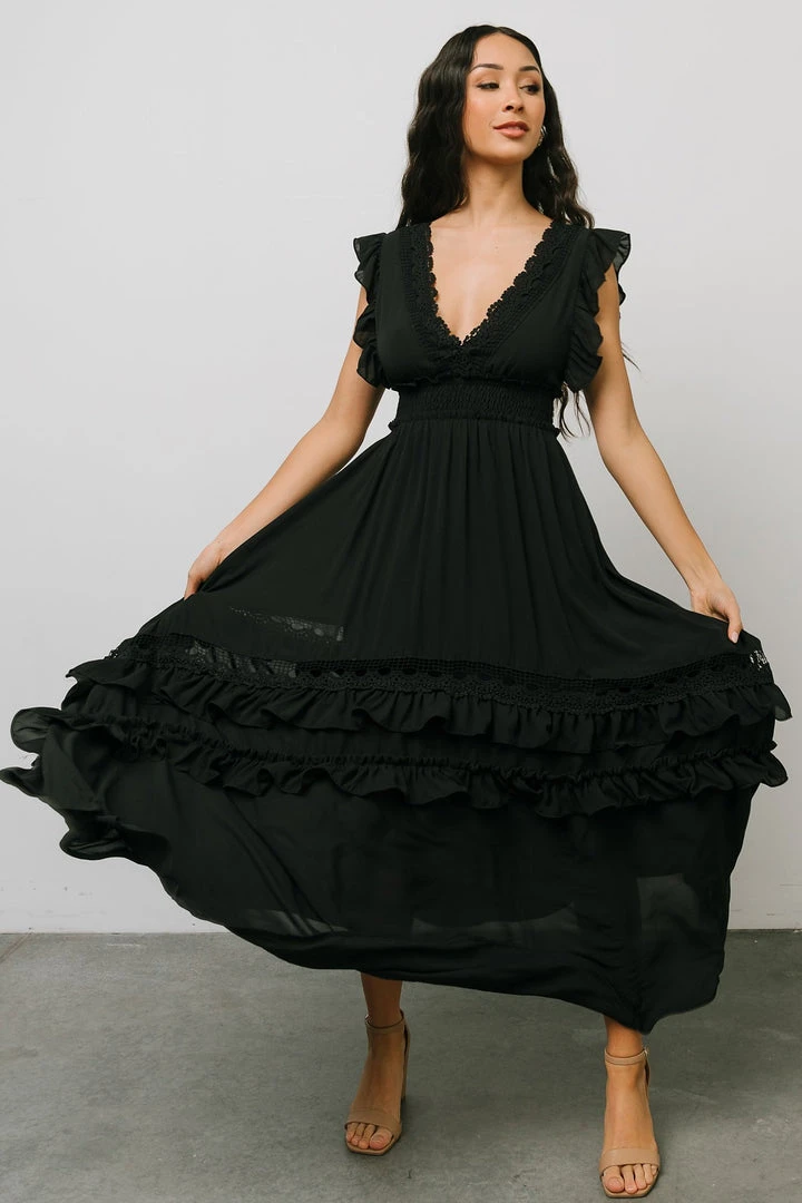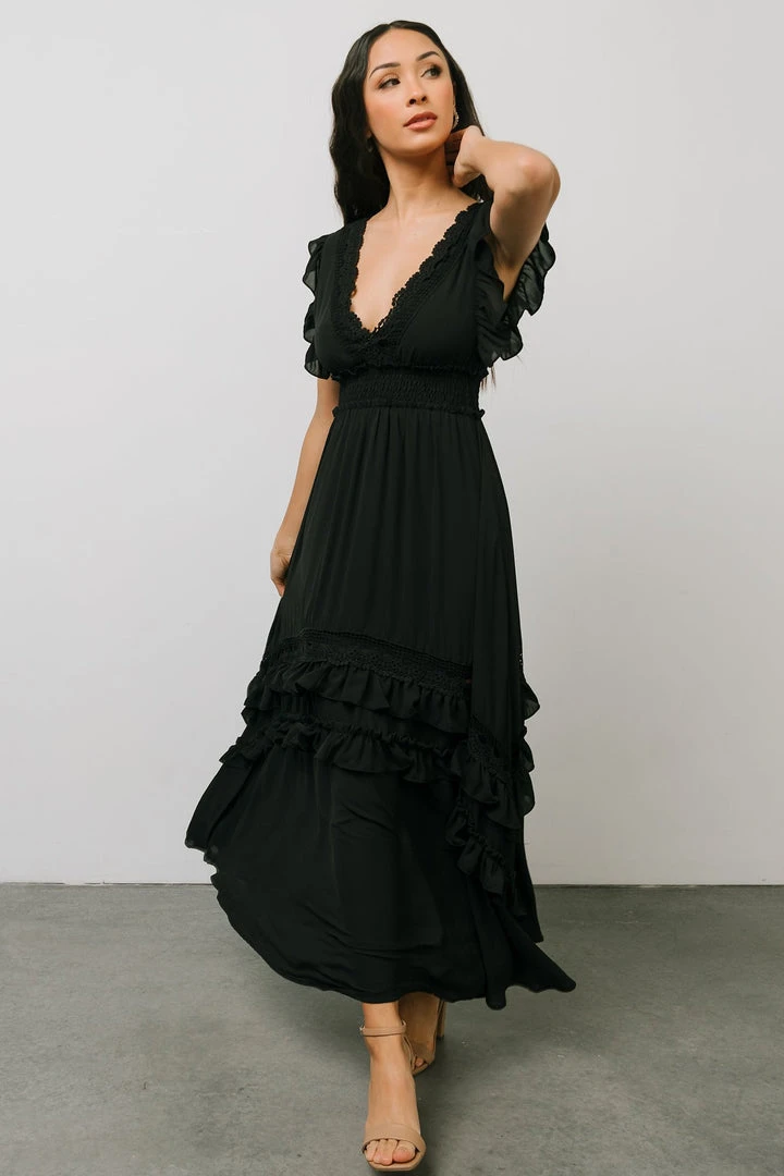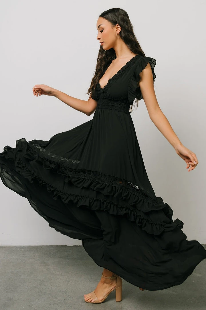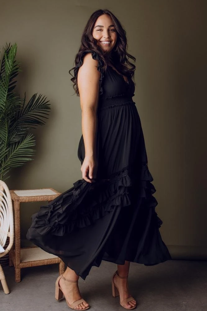 BB Custom Dresses Jasmine Ruffle Maxi Dress | Black