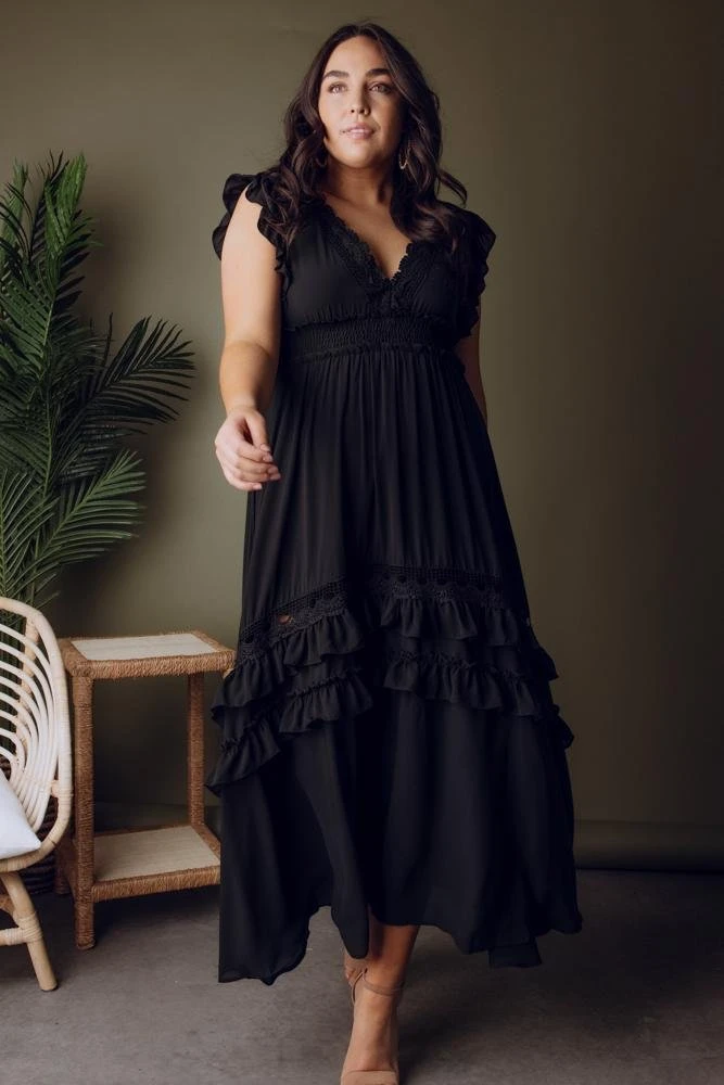 Be the first to review “BB Custom Dresses Jasmine Ruffle Maxi Dress | Black” Cancel reply