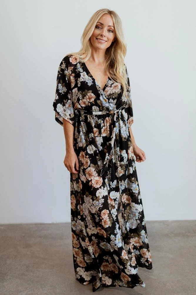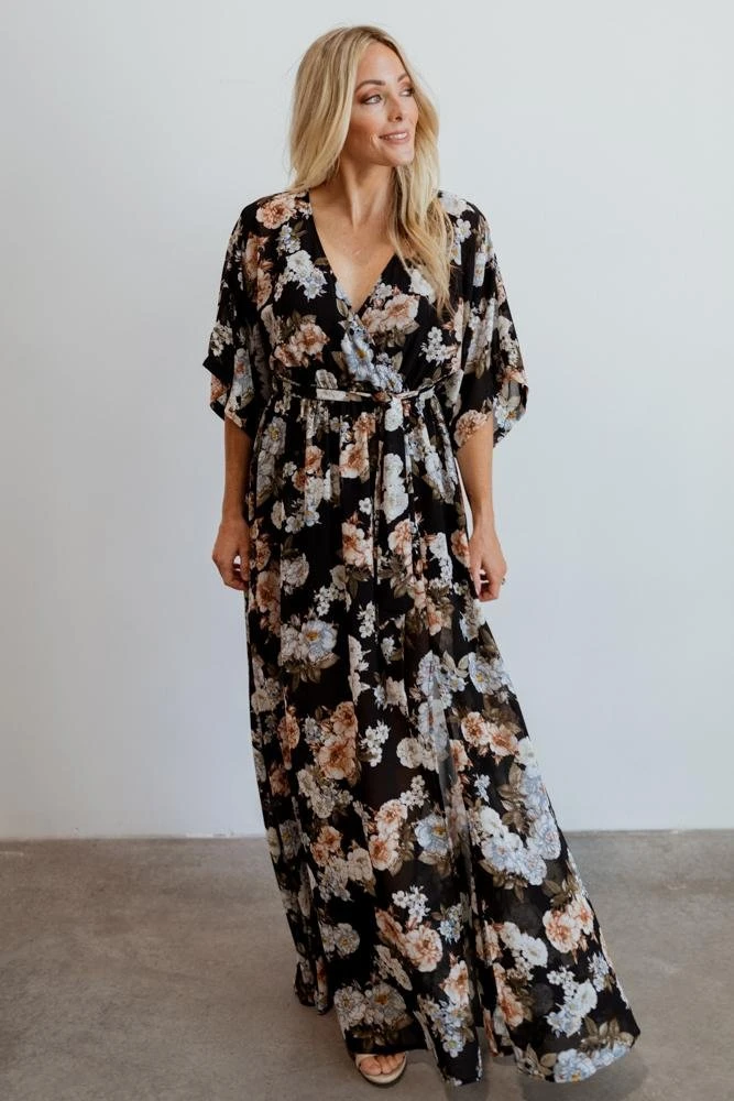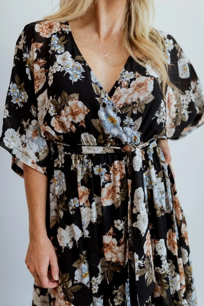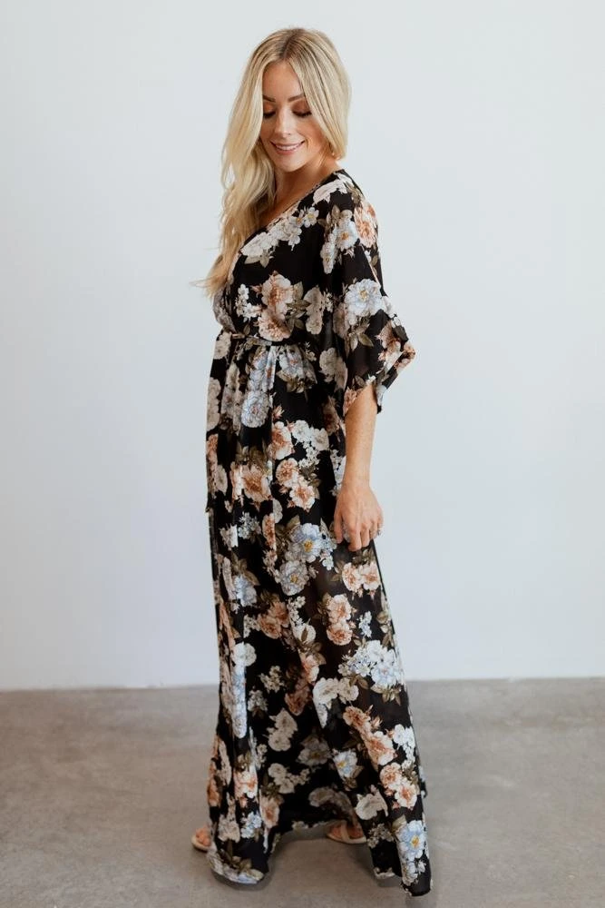 BB Custom Dresses Kia Kimono Maxi Dress | Black Floral