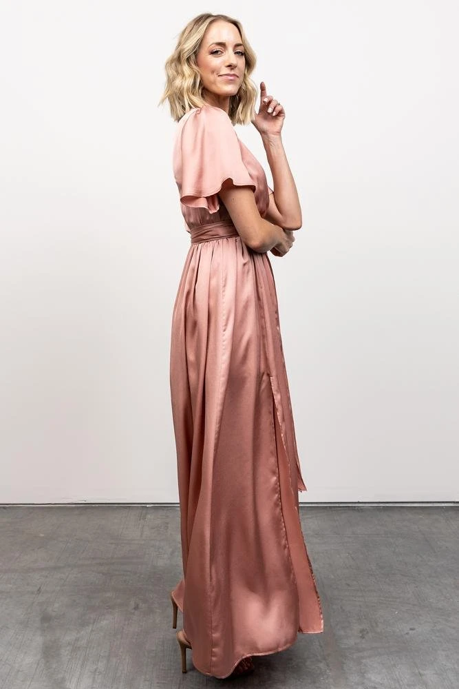 BB Custom Dresses Sicily Satin Maxi Dress | Blush