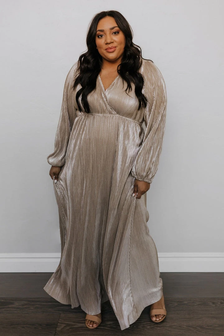 BB Custom Dresses Venus Pleated Maxi Dress | Gold