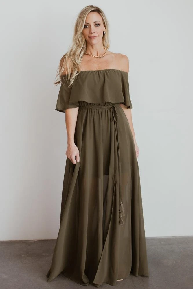 BB Custom Dresses Victoria Off Shoulder Maxi Dress | Olive