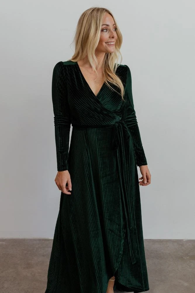 BB Custom Jada Ribbed Velvet Wrap Dress | Emerald