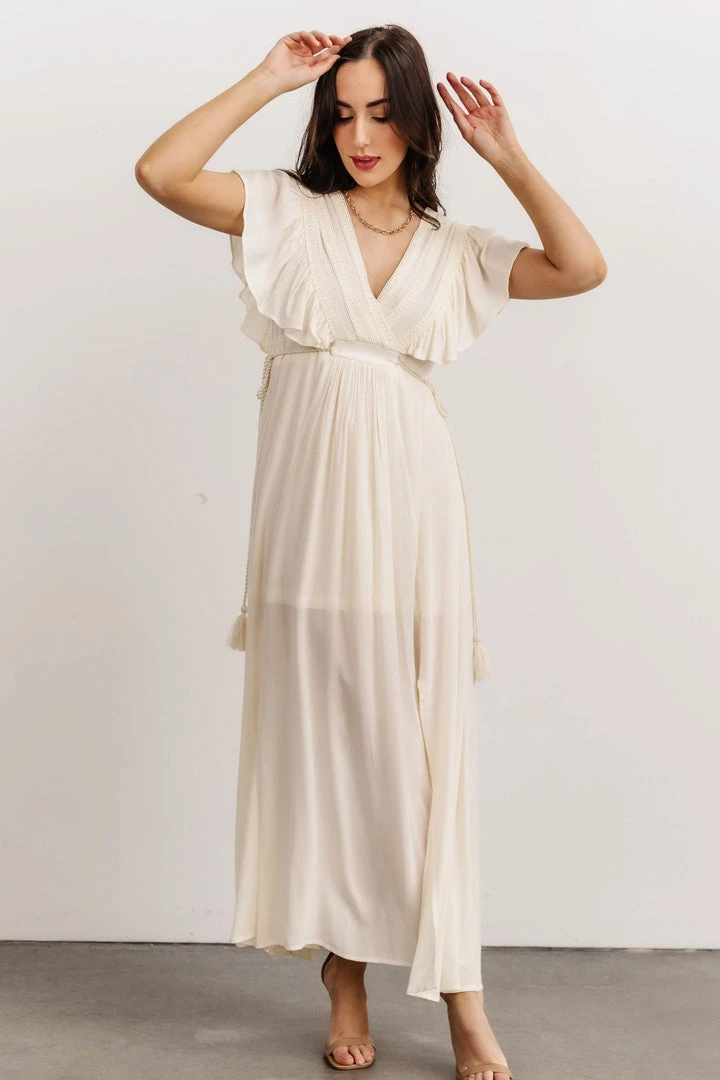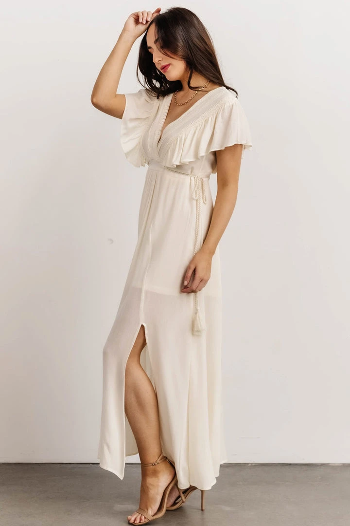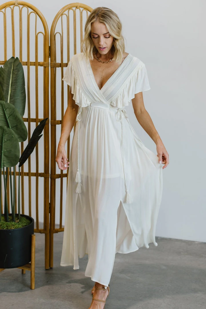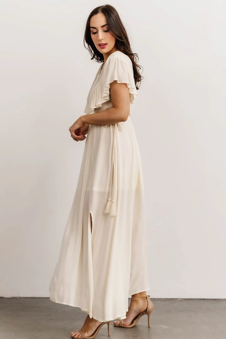 BB Custom Jennifer Deep V Maxi Dress | Ivory