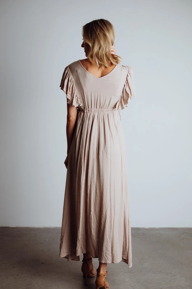 BB Custom Jennifer Deep V Maxi Dress | Sand