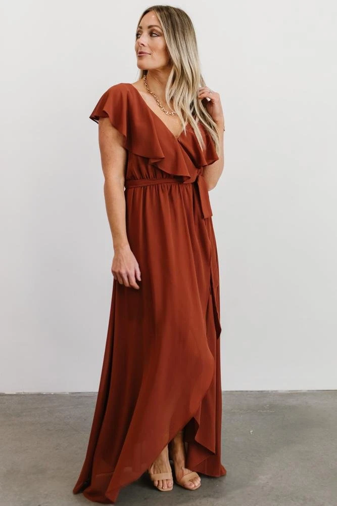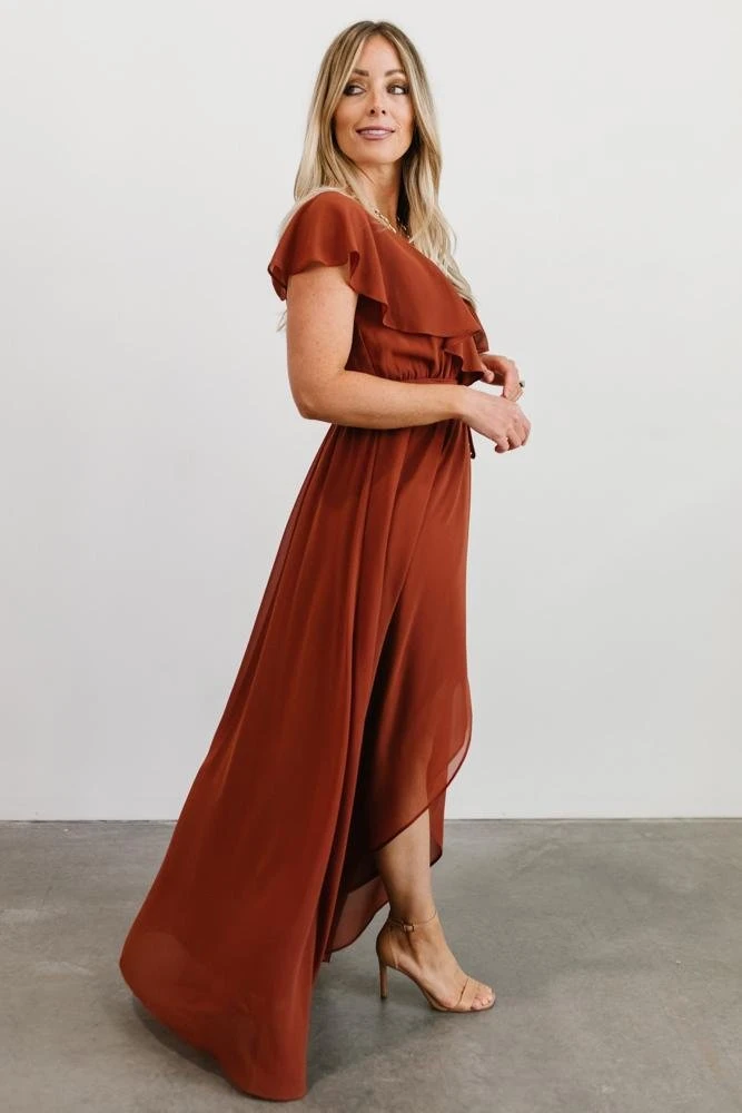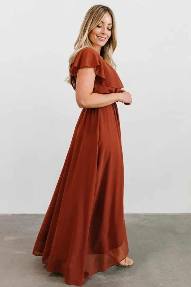 BB Custom Katya Ruffle Maxi Dress | Rust Dresses