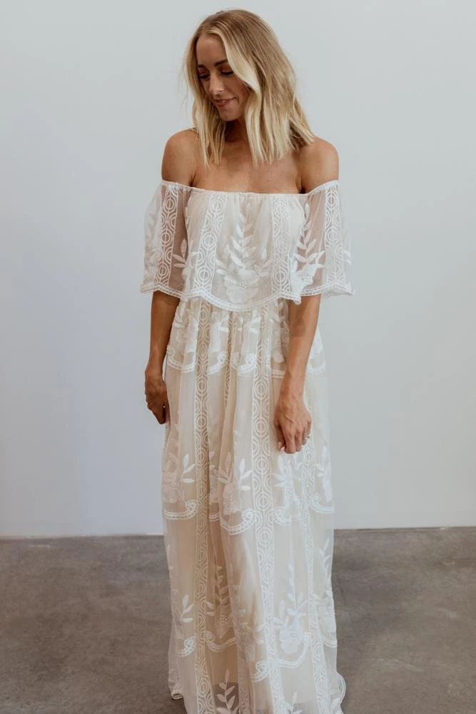 BB Custom Leon Off Shoulder Maxi Dress | White Dresses