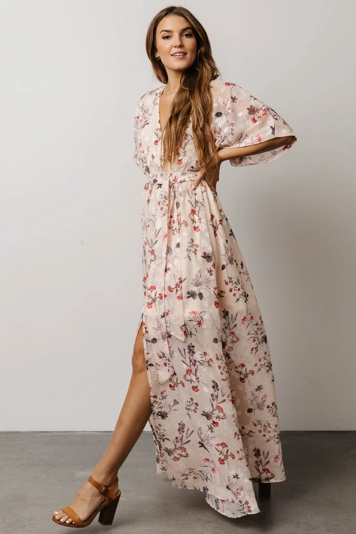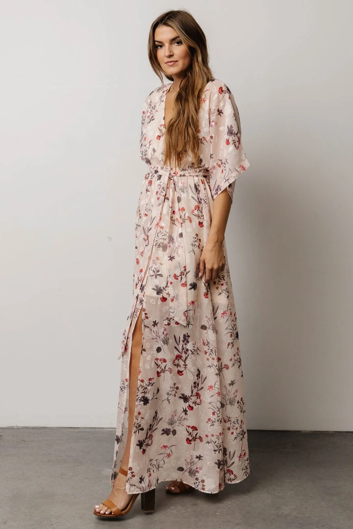 BB Custom Luca Jacquard Kimono Maxi Dress | Cherry Blossom Floral Dresses