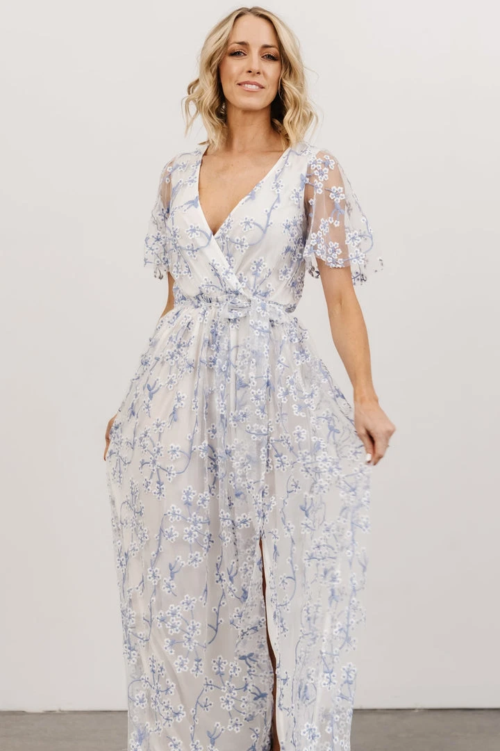 BB Custom Marseille Embossed Maxi Dress | Blue Blossom