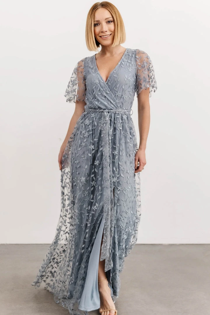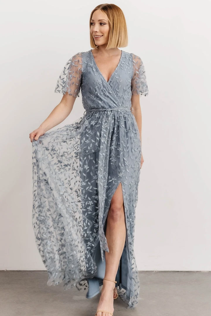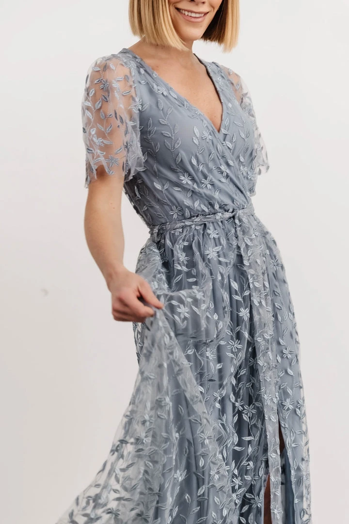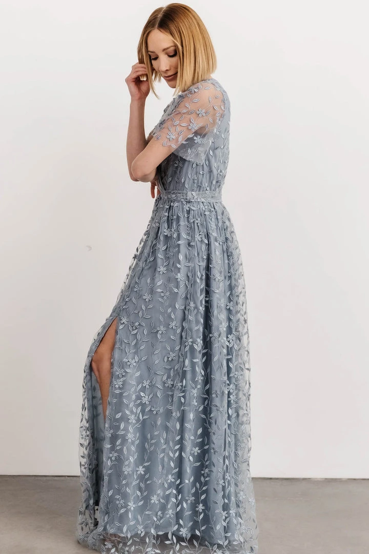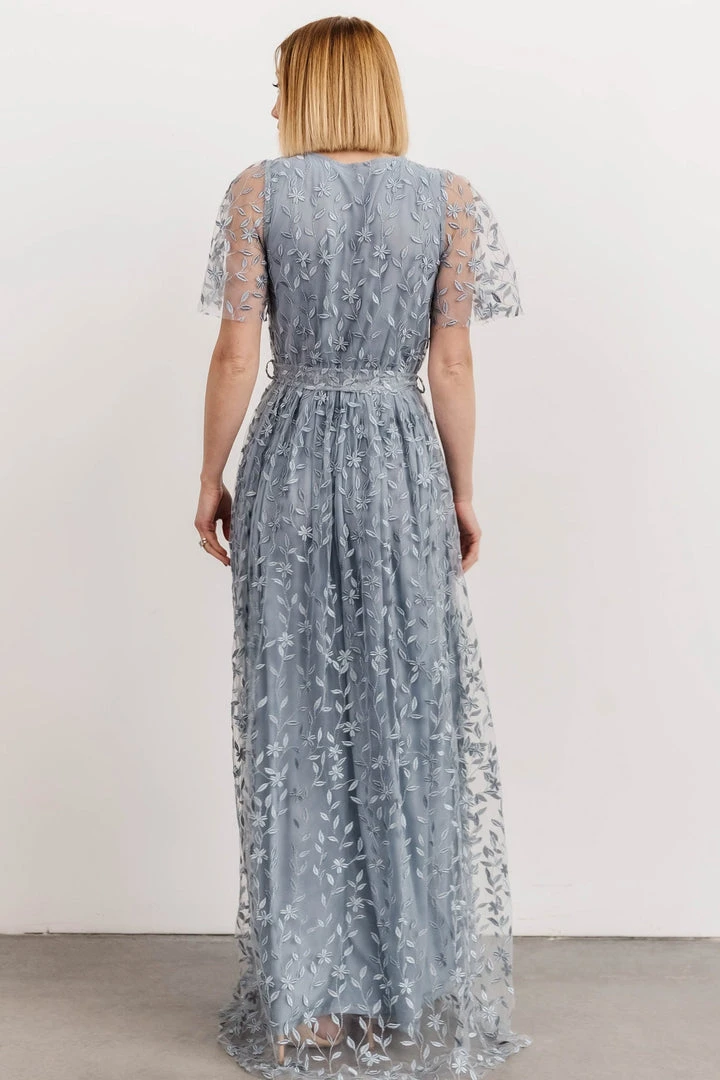 BB Custom Marseille Embossed Maxi Dress | Dusty Blue