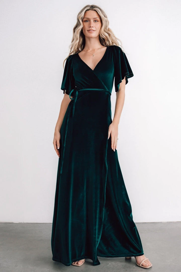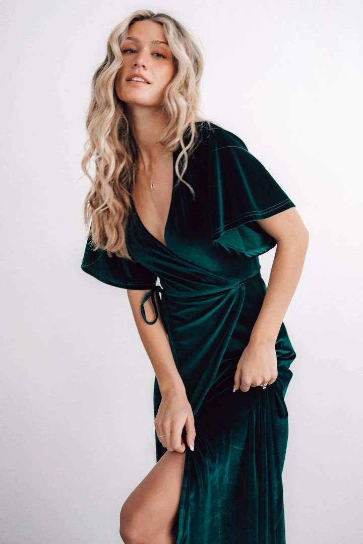 BB Custom Meghan Velvet Wrap Maxi Dress | Emerald Dresses