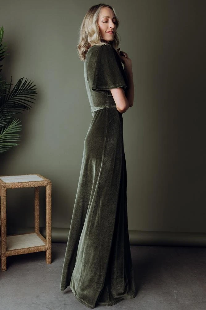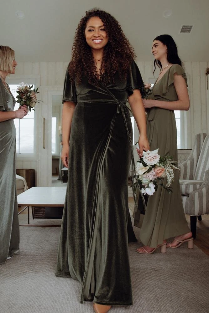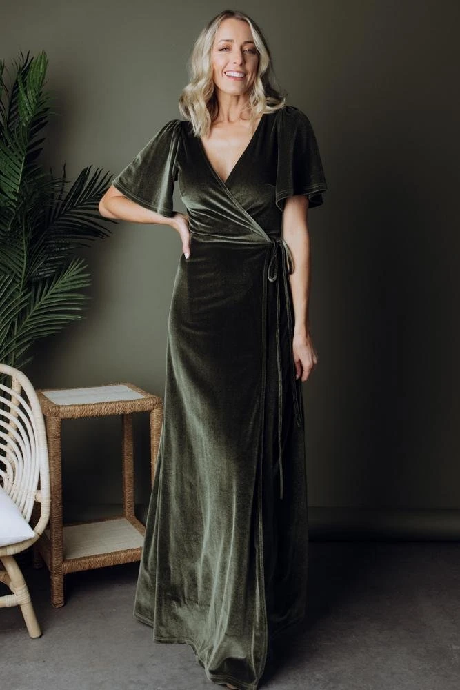 BB Custom Meghan Velvet Wrap Maxi Dress | Olive