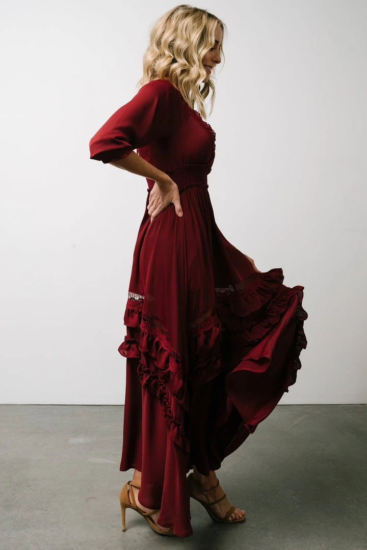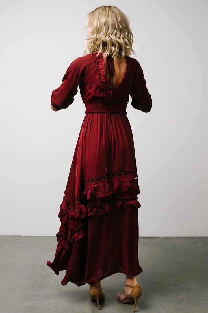 BB Custom Pippa Ruffle Maxi Dress | Merlot