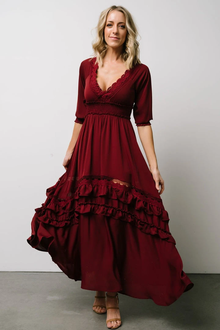 Be the first to review “BB Custom Pippa Ruffle Maxi Dress | Merlot” Cancel reply