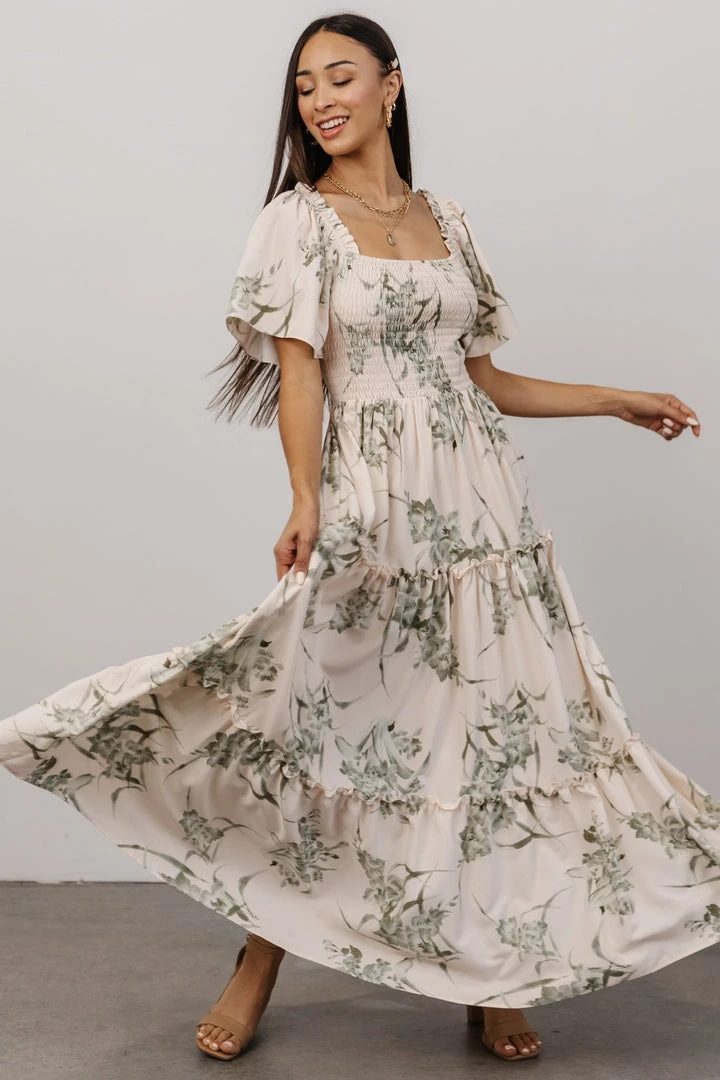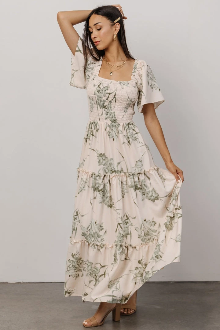 BB Custom Southampton Smocked Maxi Dress | Sage Floral Maxi Dresses