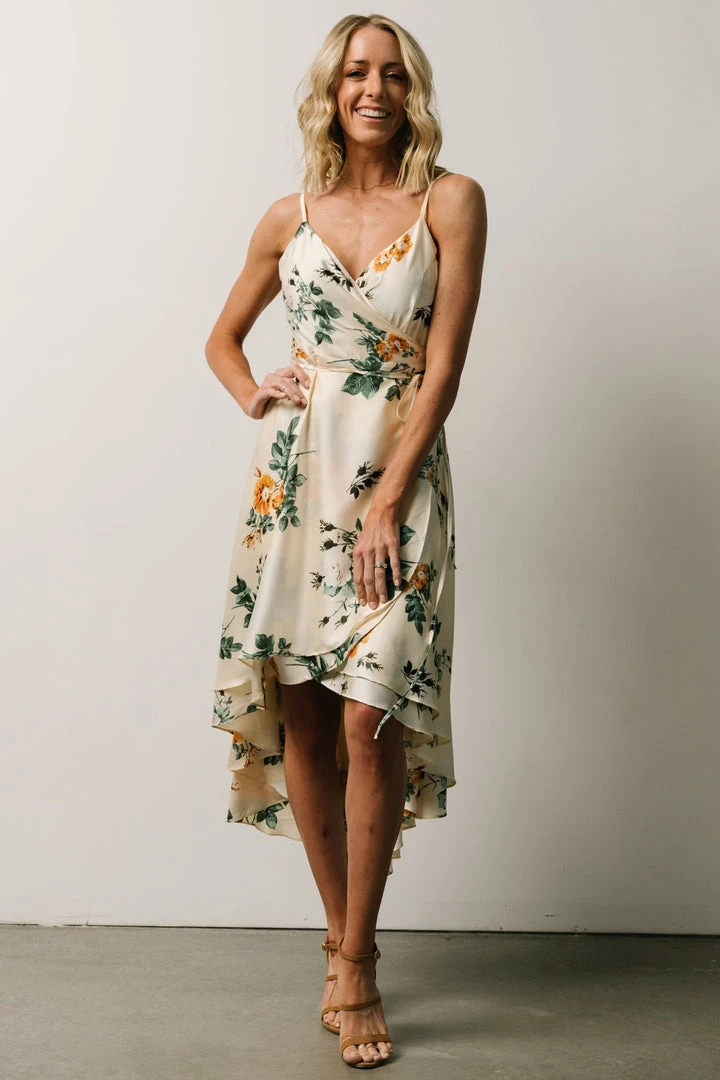 BB Custom Steffi Tulip Wrap Dress | Ivory Floral Dresses