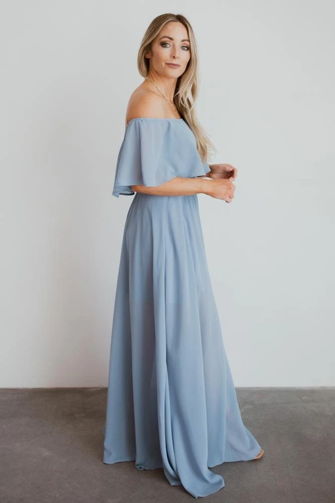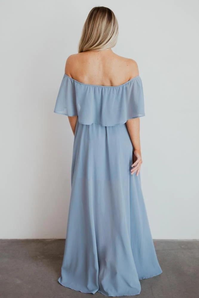 BB Custom Victoria Off Shoulder Maxi Dress | Light Blue