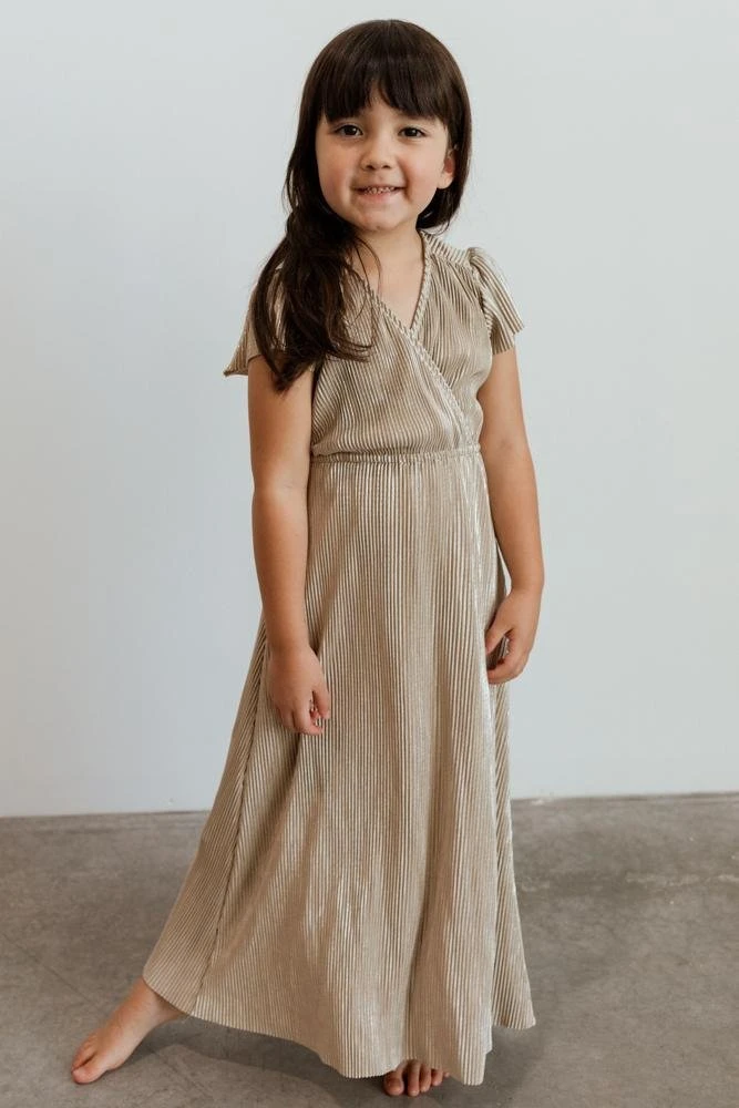 BB Custom Youth Athena Pleated Maxi Dress | Gold Dresses