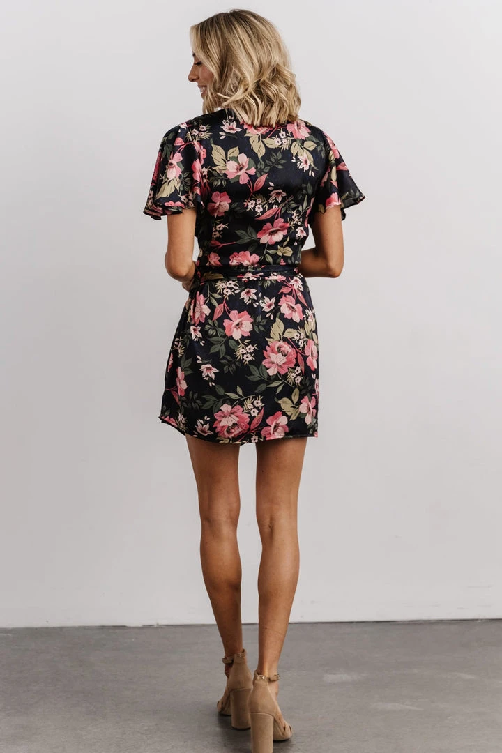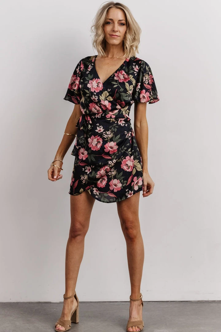 Be the first to review “DF Dresses Calloway Wrap Mini Dress | Black + Pink Floral” Cancel reply