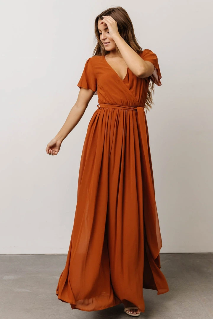 - High-quality chiffon material with solid nutmeg color throughoutÂ