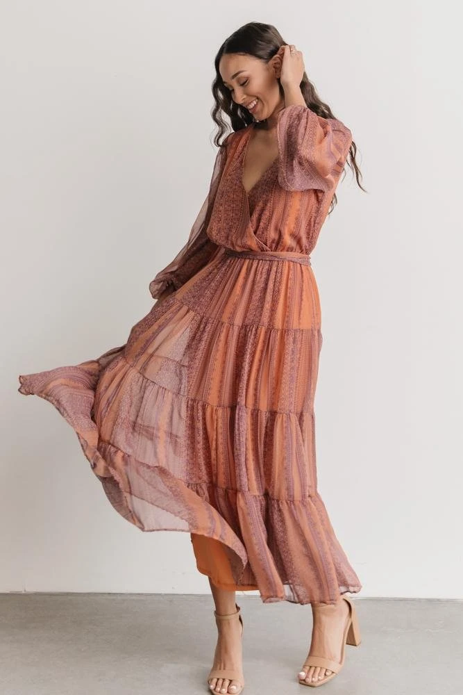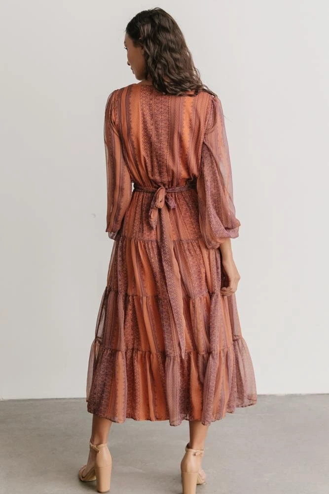 FT Ryker Tiered Midi Dress | Sunset Print Dresses