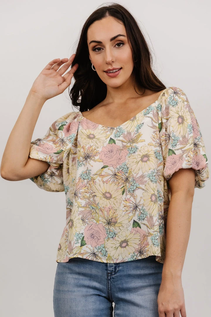 FT Tops Sandra Sweetheart Top | Pastel Floral