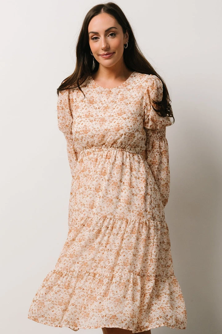 HAY Brooklyn Tiered Midi Dress | Taupe Floral