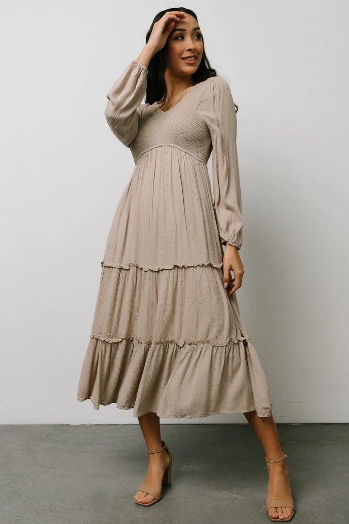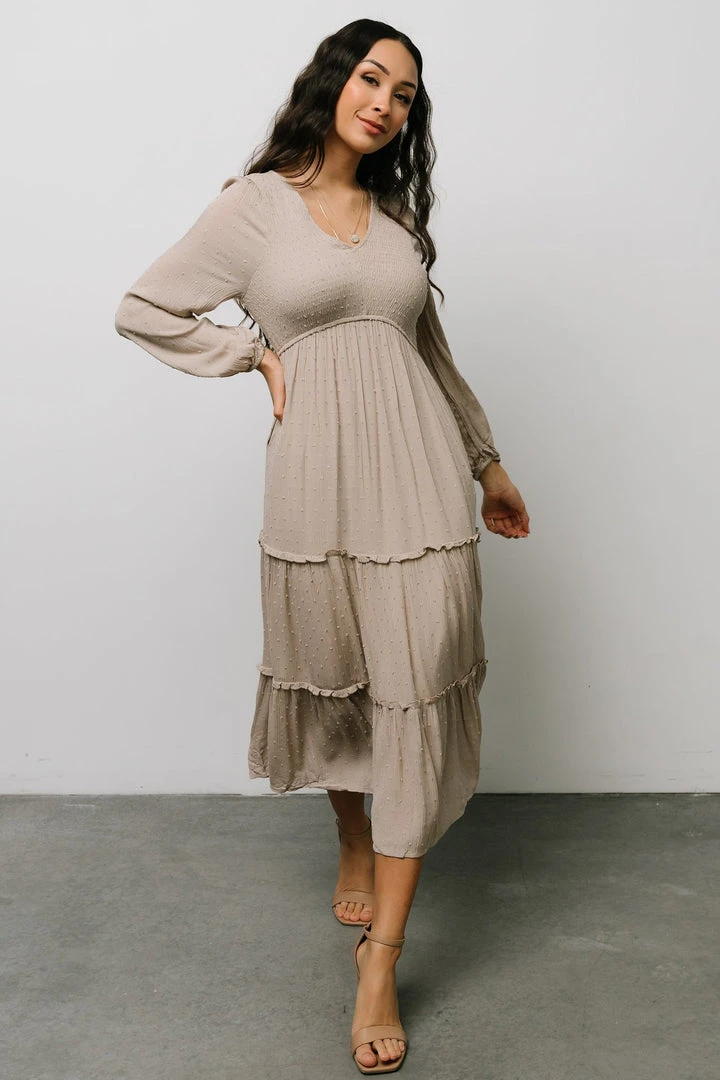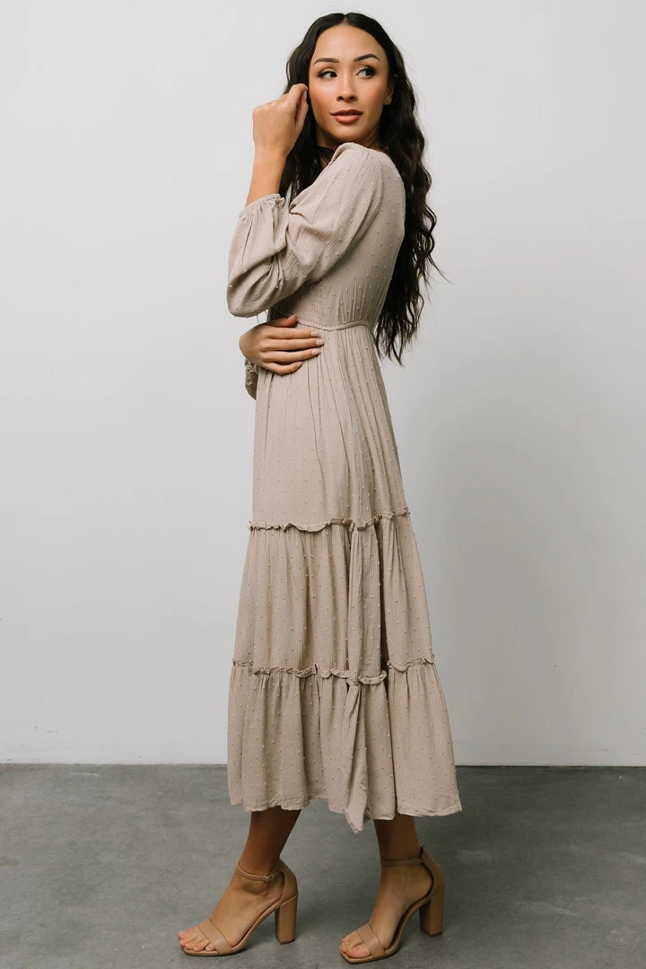 HAY Dresses Marcus Tiered Dotted Midi Dress | Beige