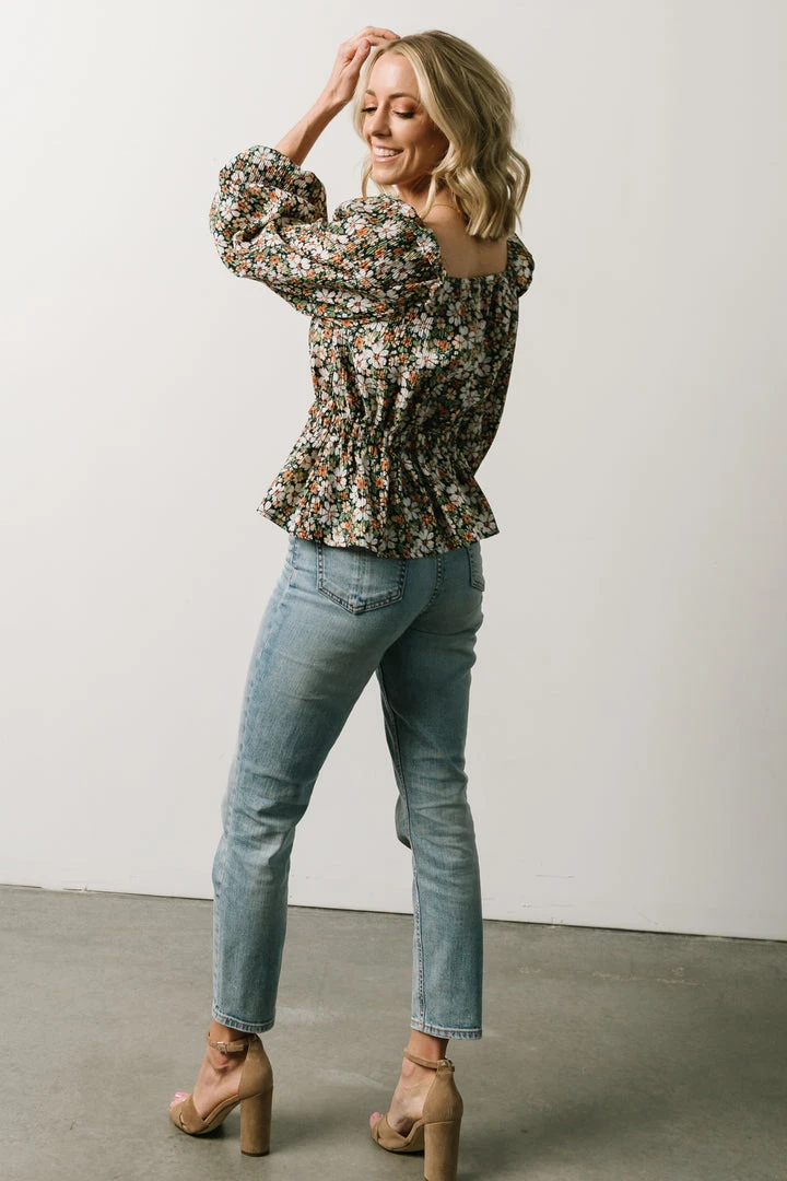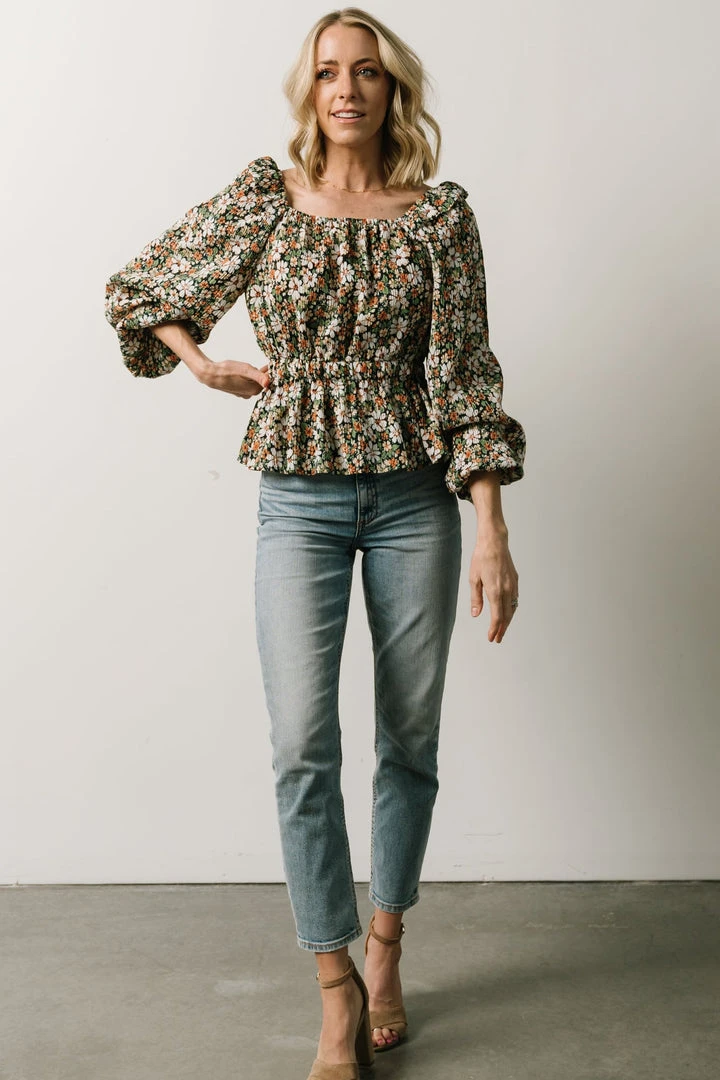 HAY Eileen Long Sleeve Peasant Top | Multi Floral