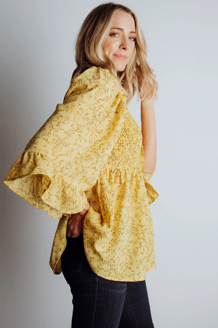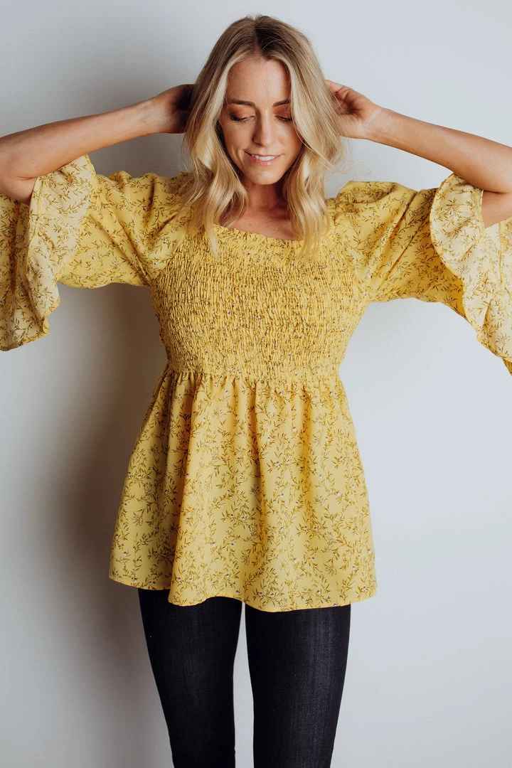 HAY Julia Smocked Top | Yellow Floral Bump Friendly