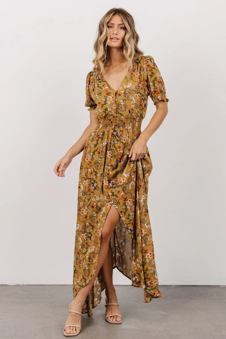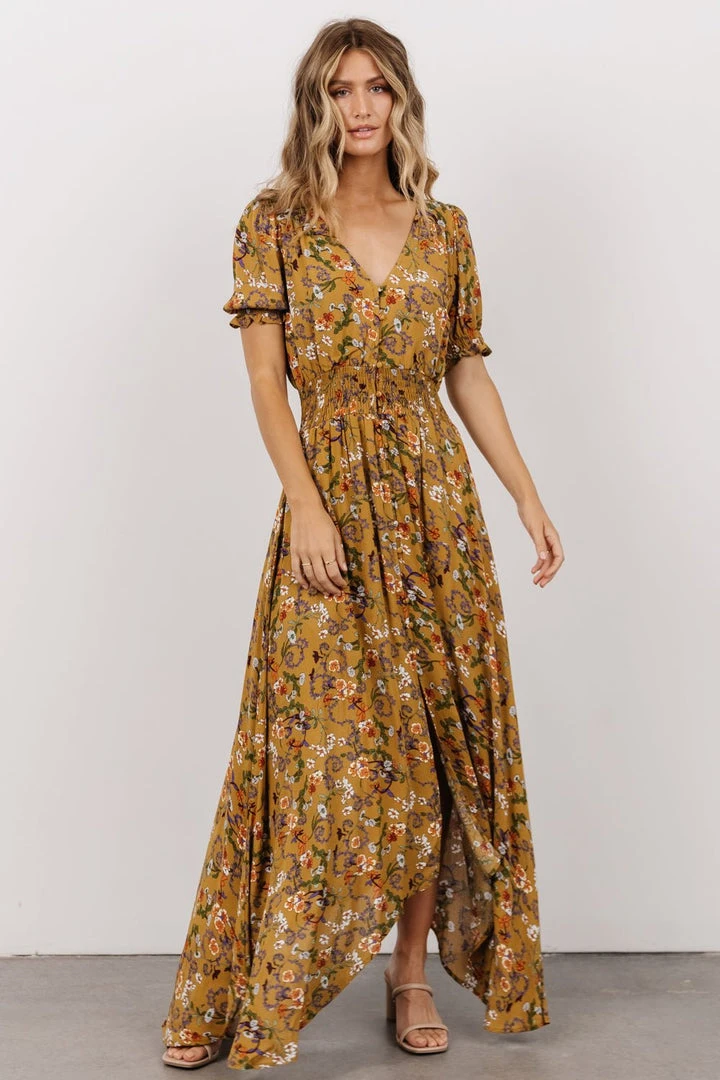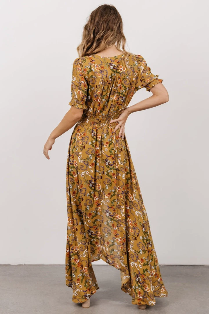 - Hazel wood background with hints of purple, orange, cream, olive, ivory and brown floral design throughout