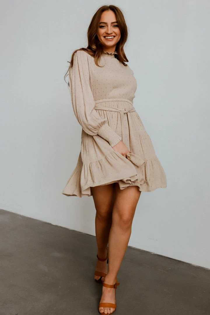IL Dresses Kayla Dotted Mini Dress | Taupe