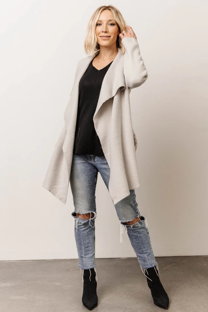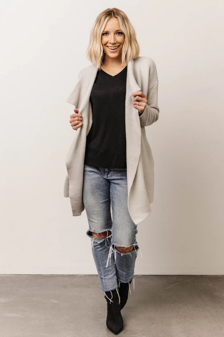 IL Ellison Lapel Cardigan | Light Gray Tops