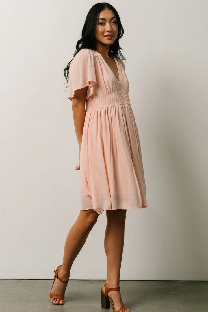 IL Fiona Pintuck Pleat Mini Dress | Peach Dresses