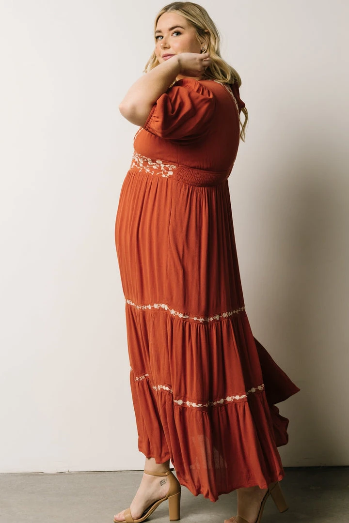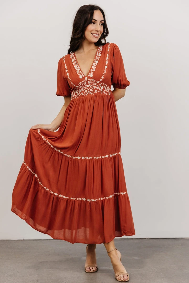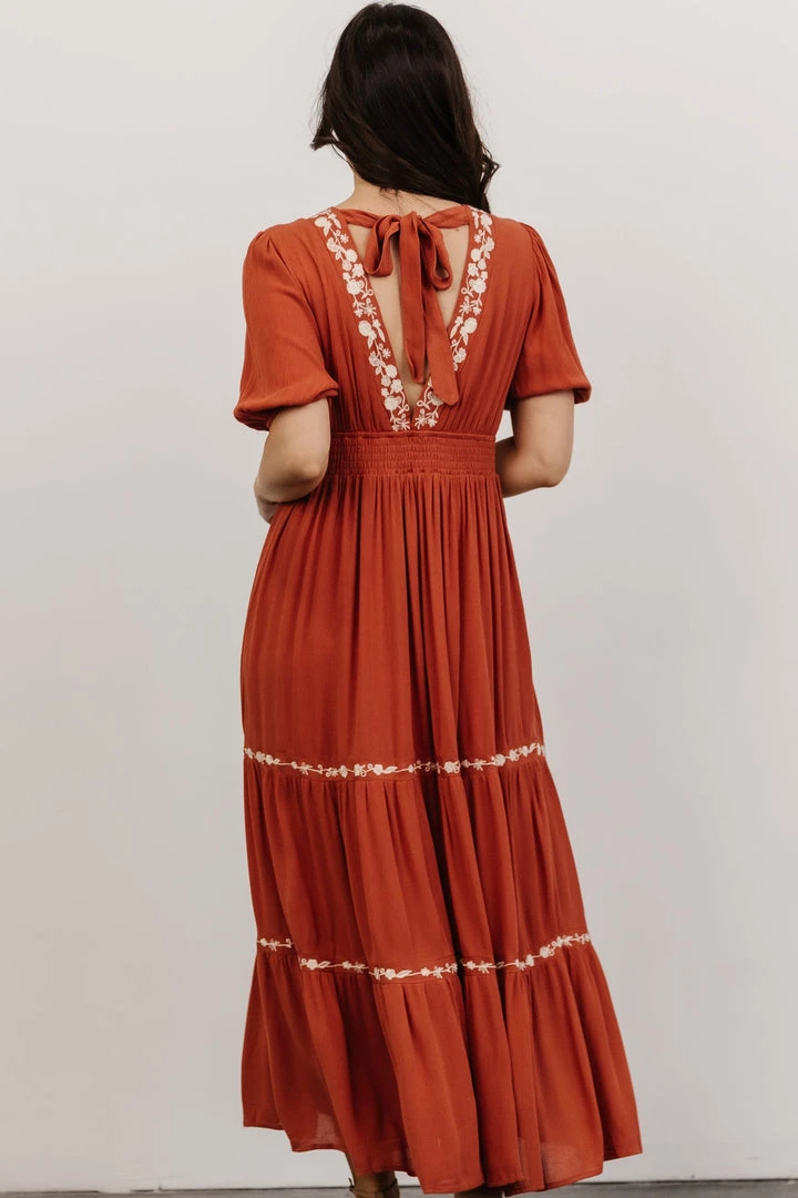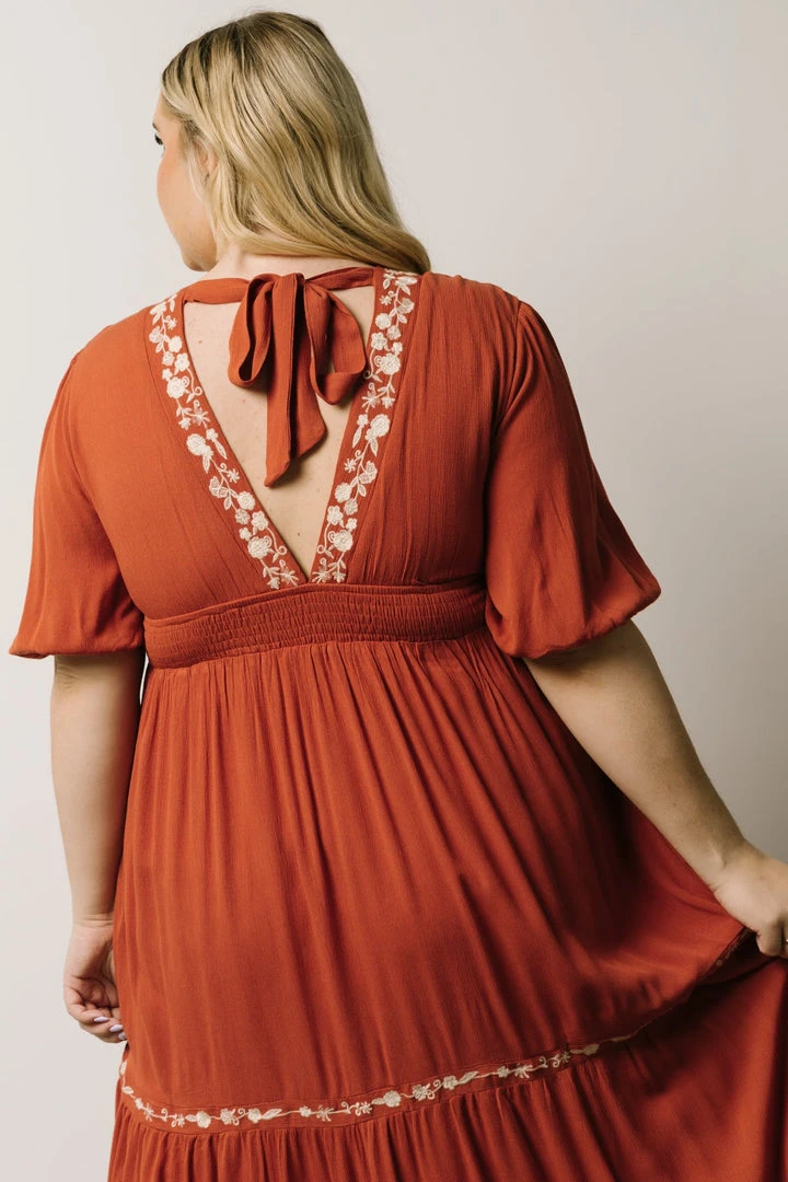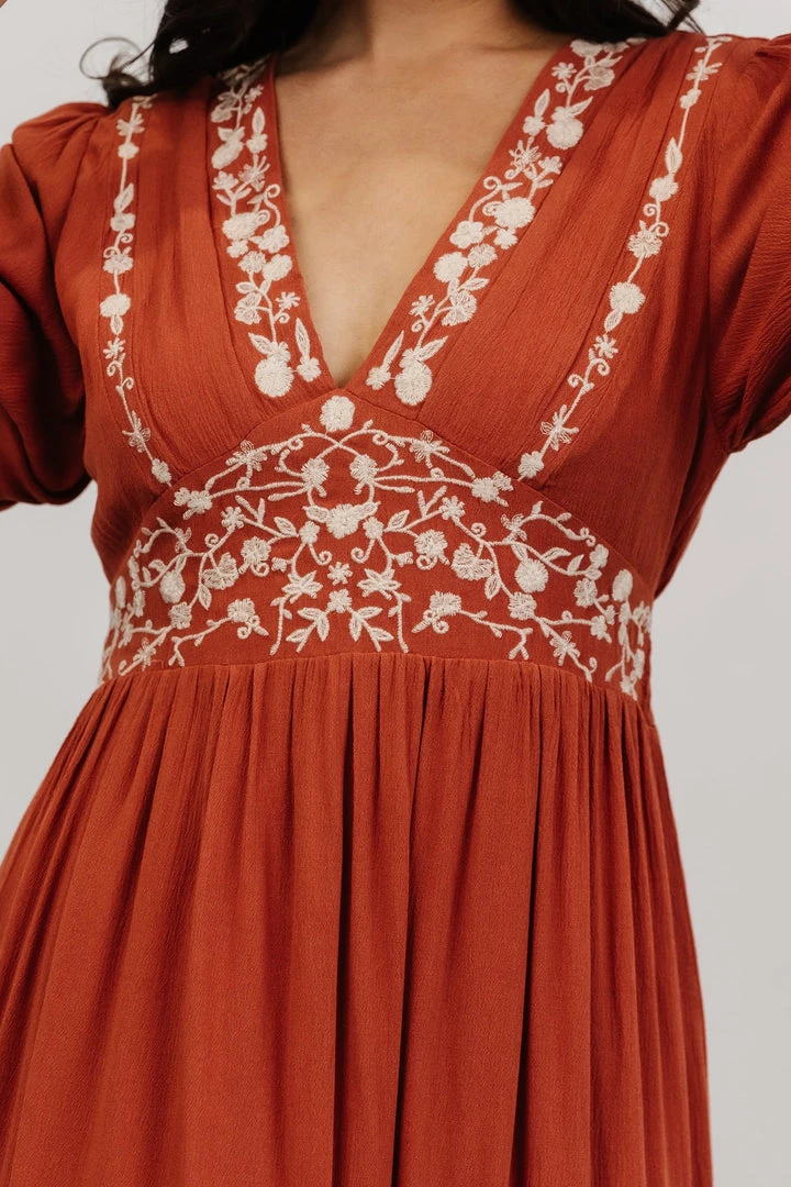 IL Santa Fe Embroidered Dress | Rust
