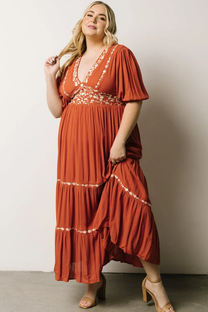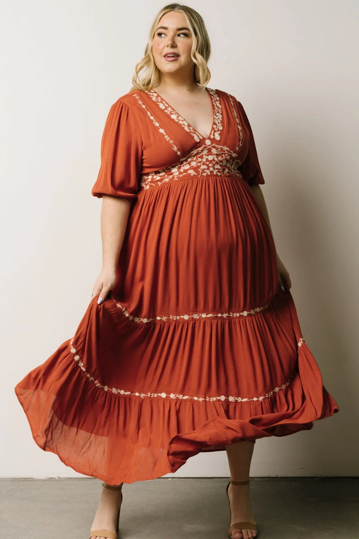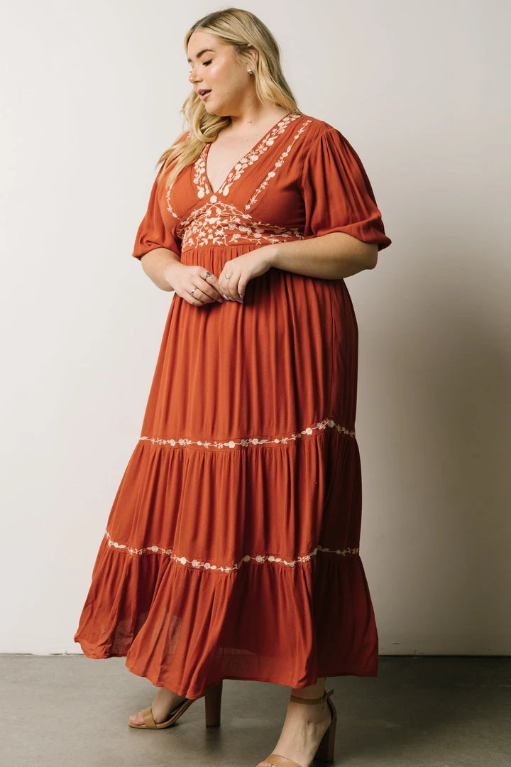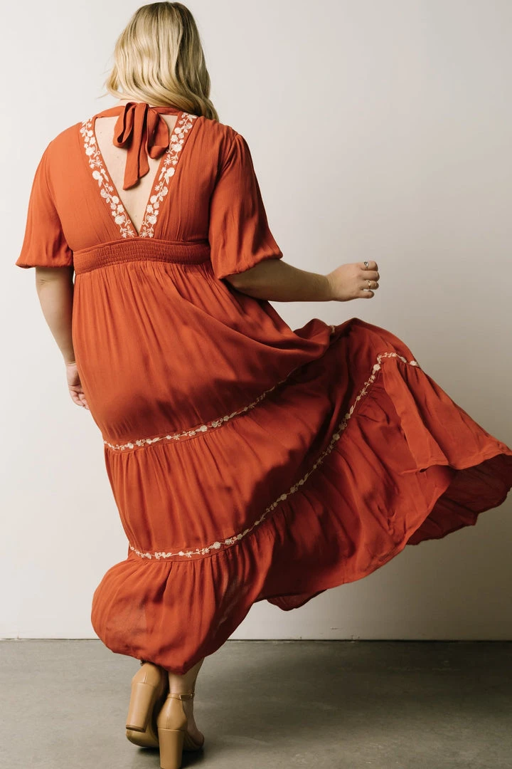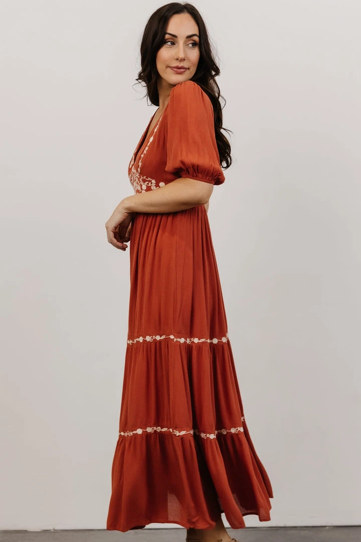 IL Santa Fe Embroidered Dress | Rust