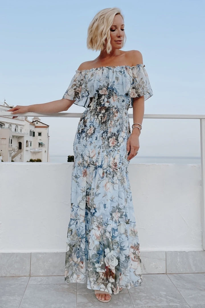 JH Amalfi Smocked Maxi Dress | Blue Floral Dresses