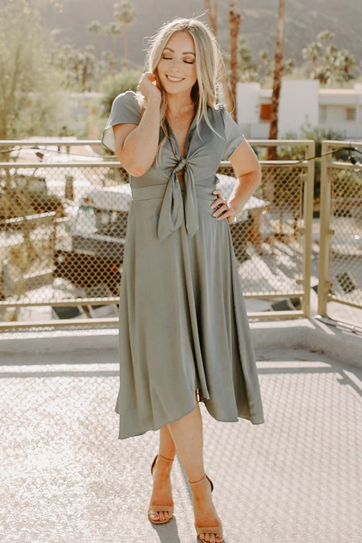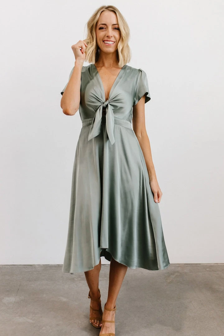 JH Dresses Poppy Satin Midi Dress | Eucalyptus
