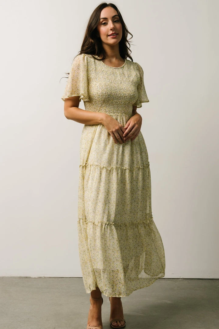 Leilani Tiered Midi Dress | Yellow + Green Multi Floral Dresses
