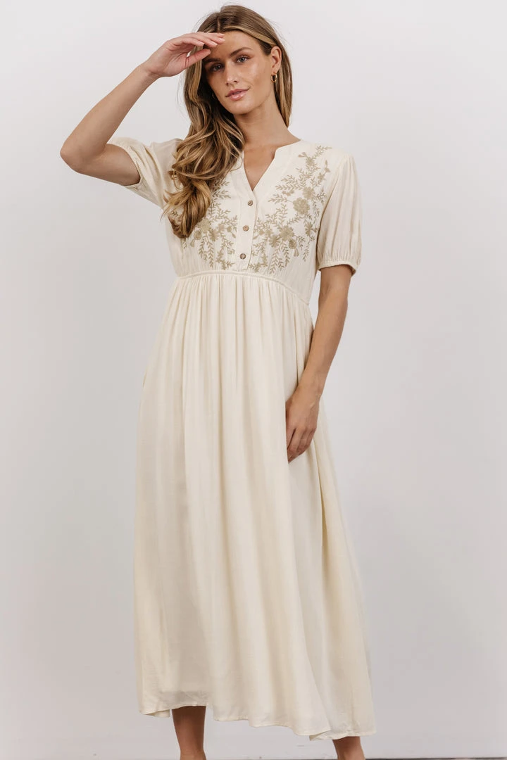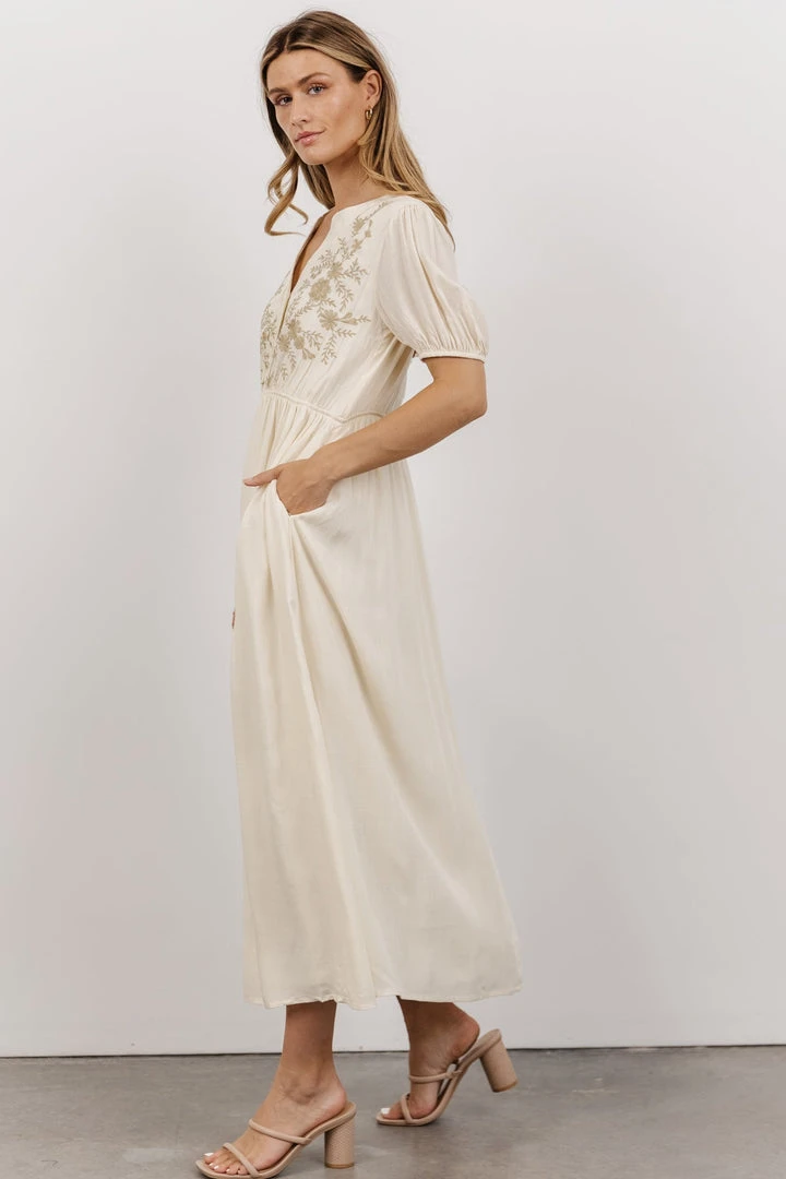 POL Dresses Maven Embroidered Midi Dress | Vintage Cream