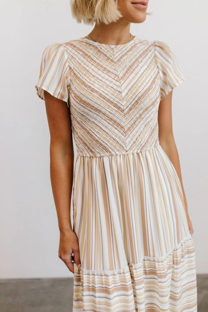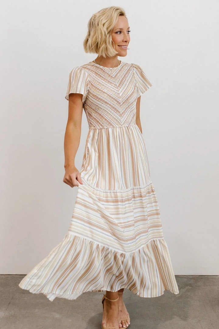 POL Dresses Willow Smocked Maxi Dress | Tan Striped