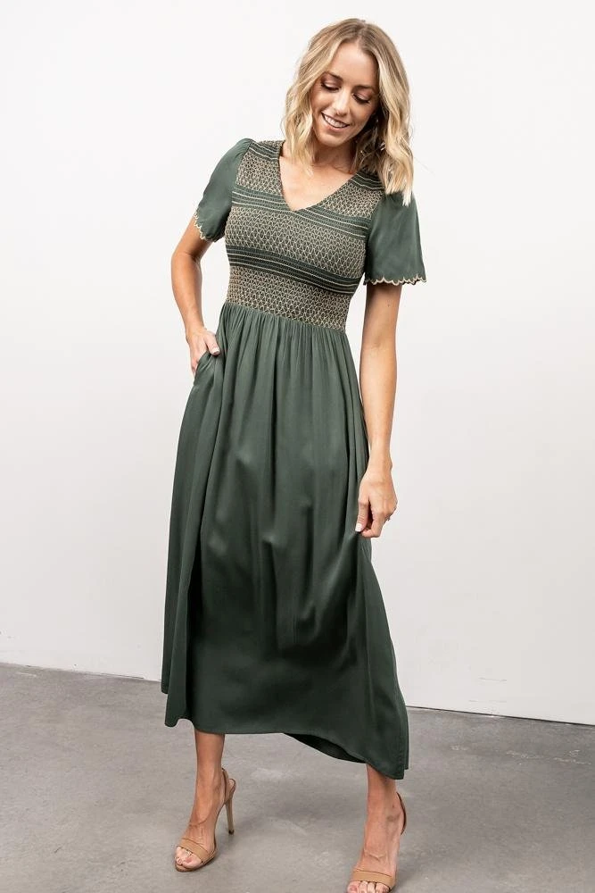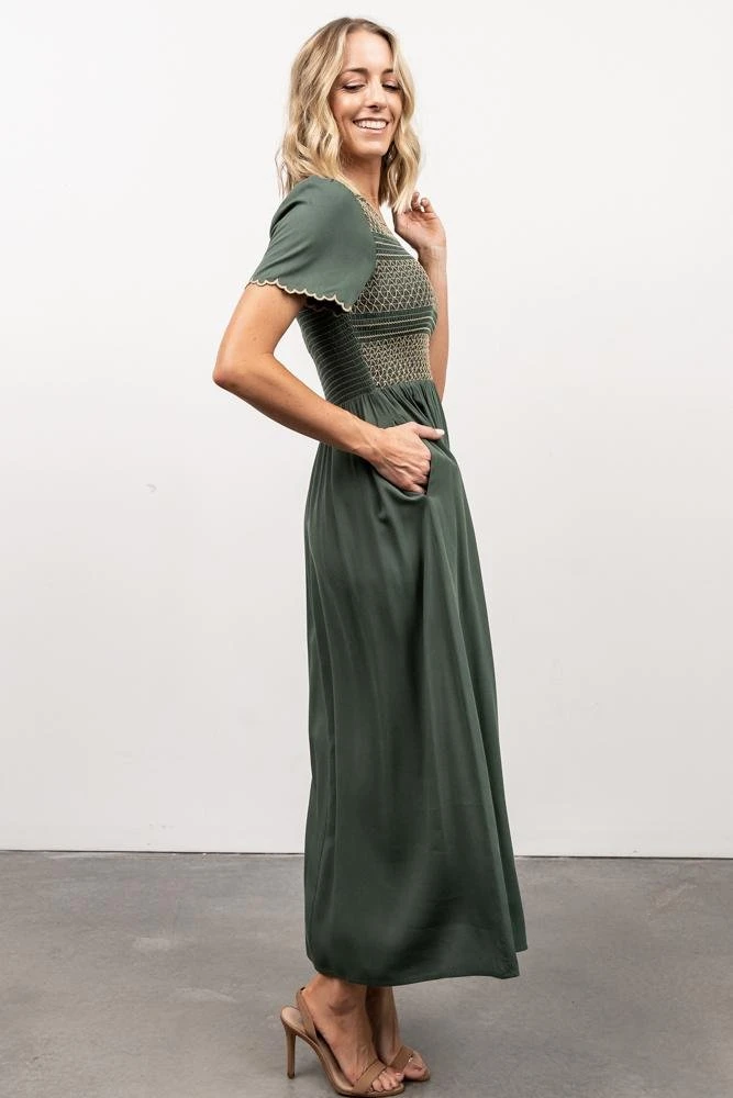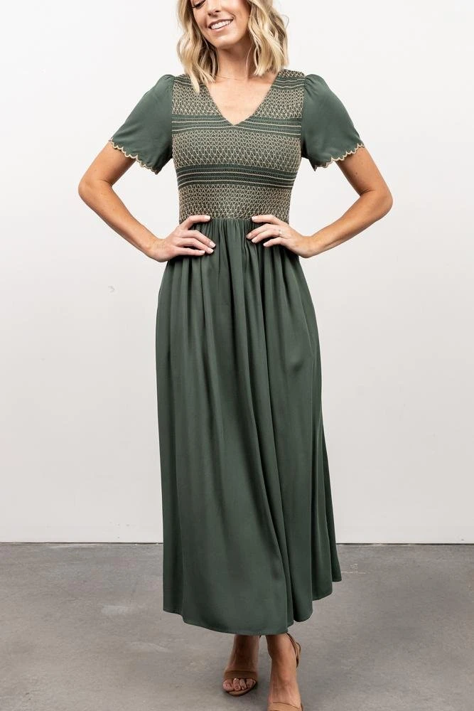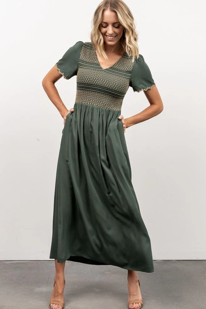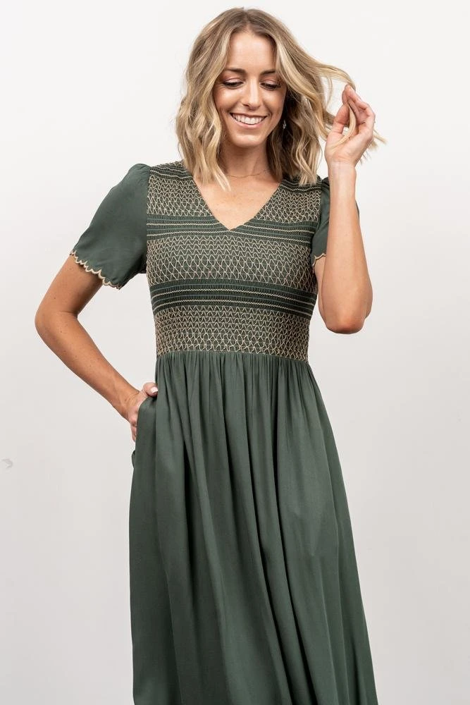 Be the first to review “POL Leeds Smocked Maxi Dress | Green” Cancel reply