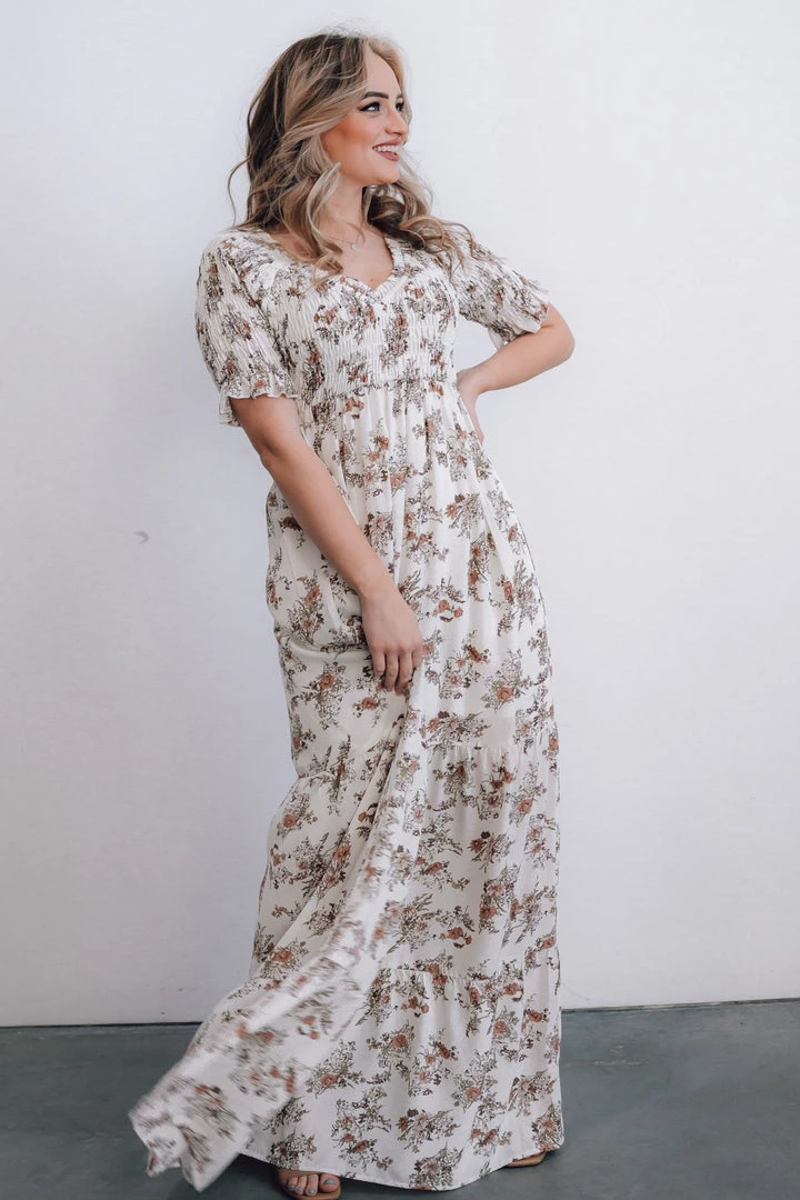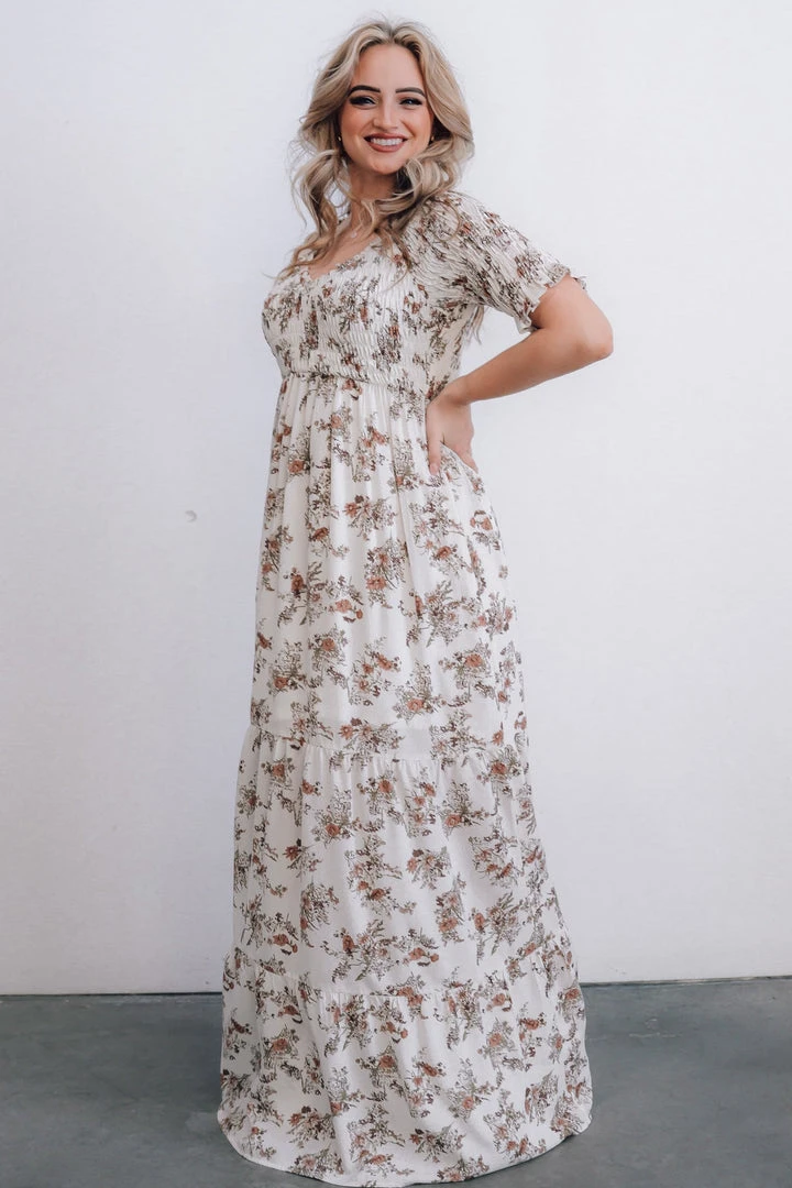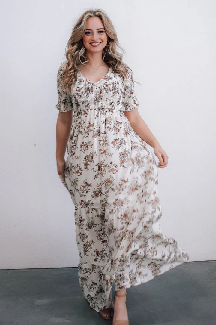 POL Lotta Smocked Maxi Dress | White Floral Dresses