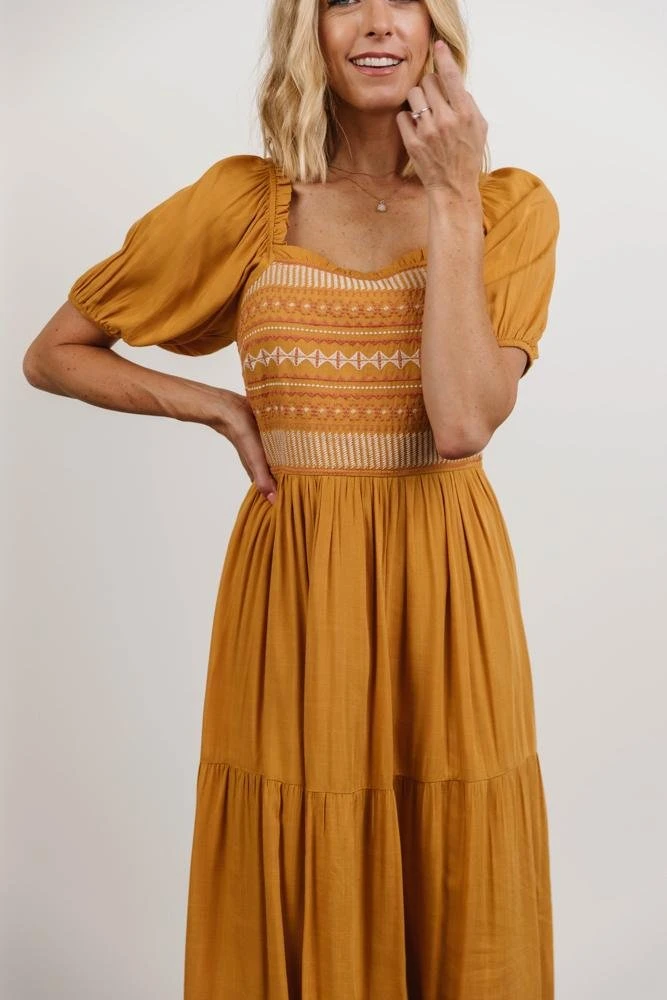 Be the first to review “POL Newcastle Embroidered Midi Dress | Mustard” Cancel reply